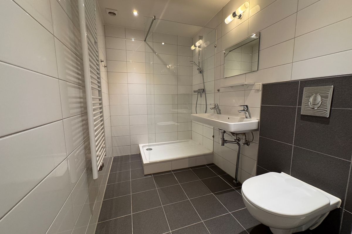 Entree op de begane grond, via de vaste trappen bevindt de voordeur van het appartement zich op de eerste verdieping. Entree in de hal welk in open verbinding staat met de woonkamer, direct bij de voordeur bevindt zich de badkamer welk luxe is afgewerkt en is voorzien van een inloopdouche, een wastafel met mengkraan, een handdoekenradiator en zwevend toilet. Tevens bevindt de aansluiting voor de wasmachine zich in de hal in een daarvoor bestemde kast.