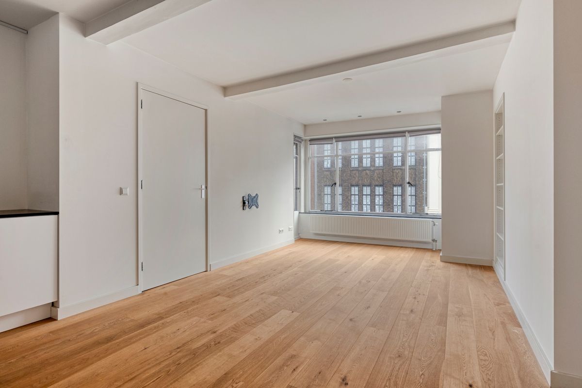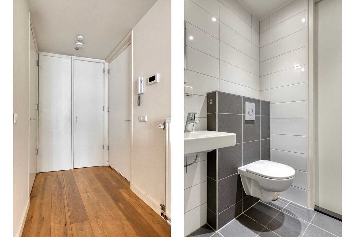 Entree van het appartement met woonkamer en open keuken. De keuken is voorzien van een inductie kookplaat, vaatwasser, inbouwkoelkast met vriezer, combimagnetron en afzuigkap, Dankzij de goede breedte van de woonkamer is er meer dan voldoende ruimte voor een ruime zit- en eethoek. Via de woonkamer loop je door naar de slaapruimte aan de voorzijde van het appartement. Deze kamer heeft openslaande deuren naar een klein inpandig balkon. Zowel de woonkamer als de slaapkamer zijn voorzien van eikenhouten vloeren. De ruime badkamer beschikt overeen toilet, wastafel en douche. Naast de badkamer zit nog een aparte kast met de aansluiting voor de wasmachine.