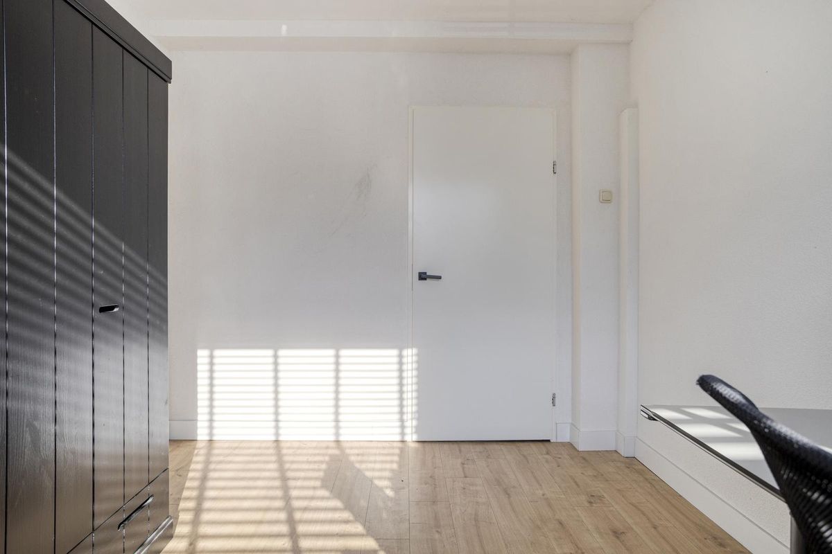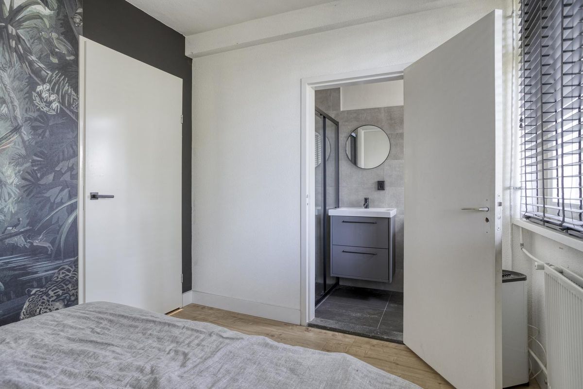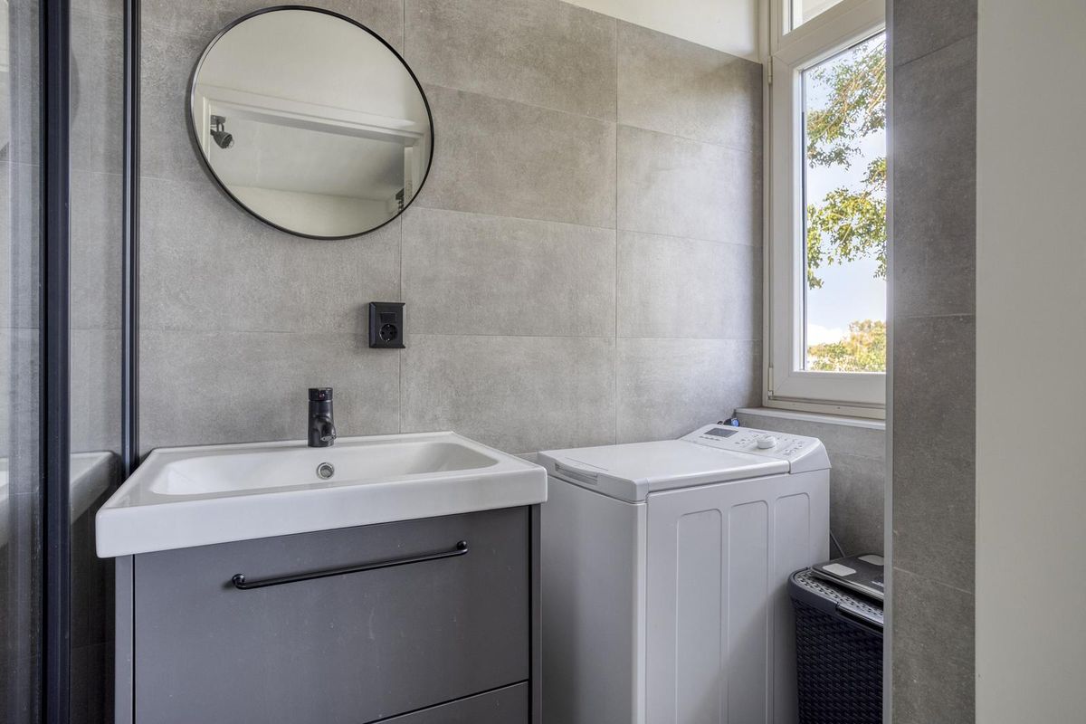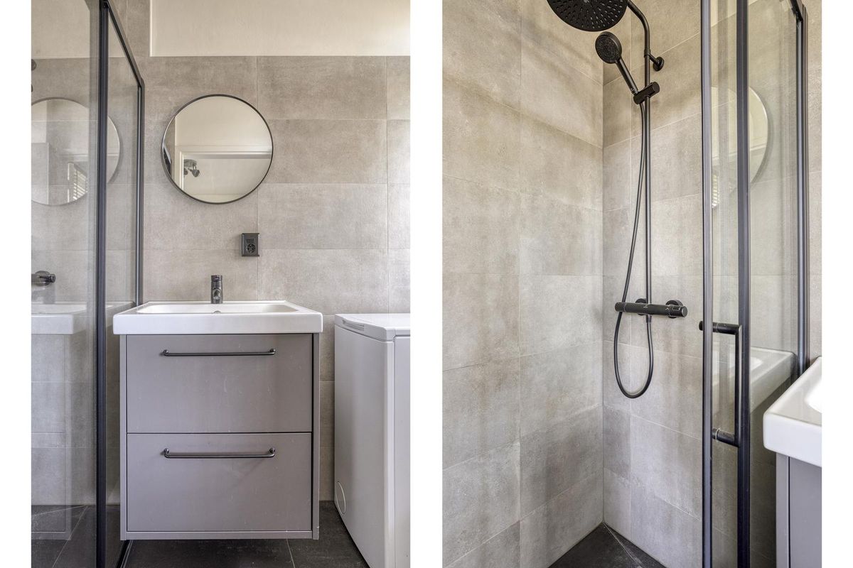 Er zijn twee slaapkamers. De eerste is bereikbaar via de hal, de tweede (de master bedroom) ligt aangrenzend aan de woonkamer. Hier is genoeg ruimte voor een tweepersoonsbed, en vanuit deze kamer heb je direct toegang tot de badkamer. De tweede slaapkamer is eveneens ruim en flexibel in te delen: ideaal als werkruimte, hobbykamer of royale kledingkamer. De badkamer is modern afgewerkt met grijze wandtegels en stoere zwarte accenten in kranen, grepen en deuren. Er is een inloopdouche, een wastafel met meubel en een aansluiting voor de wasmachine, praktisch en stijlvol tegelijk. Op de begane grond is er nog een inpandige berging aanwezig.