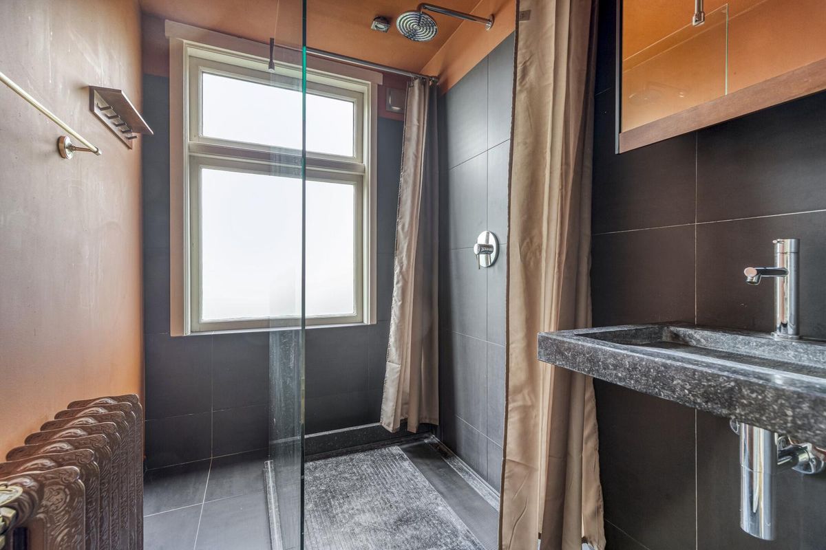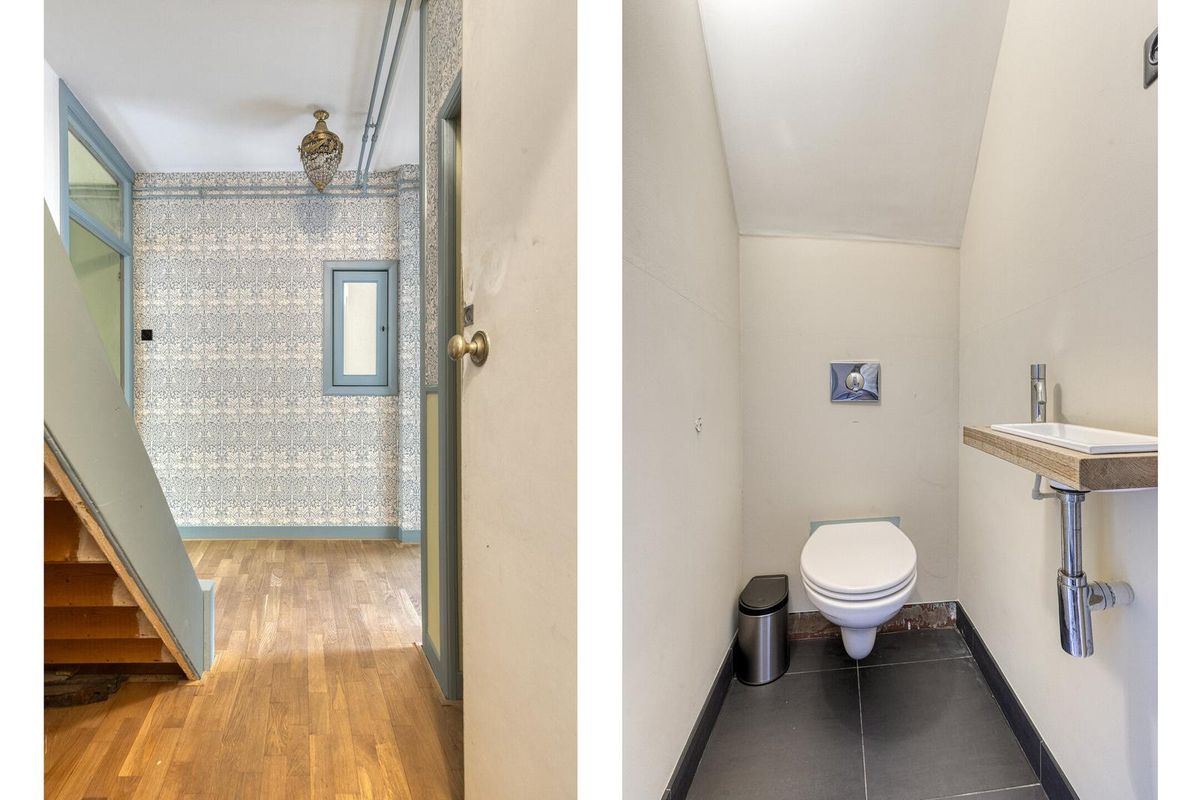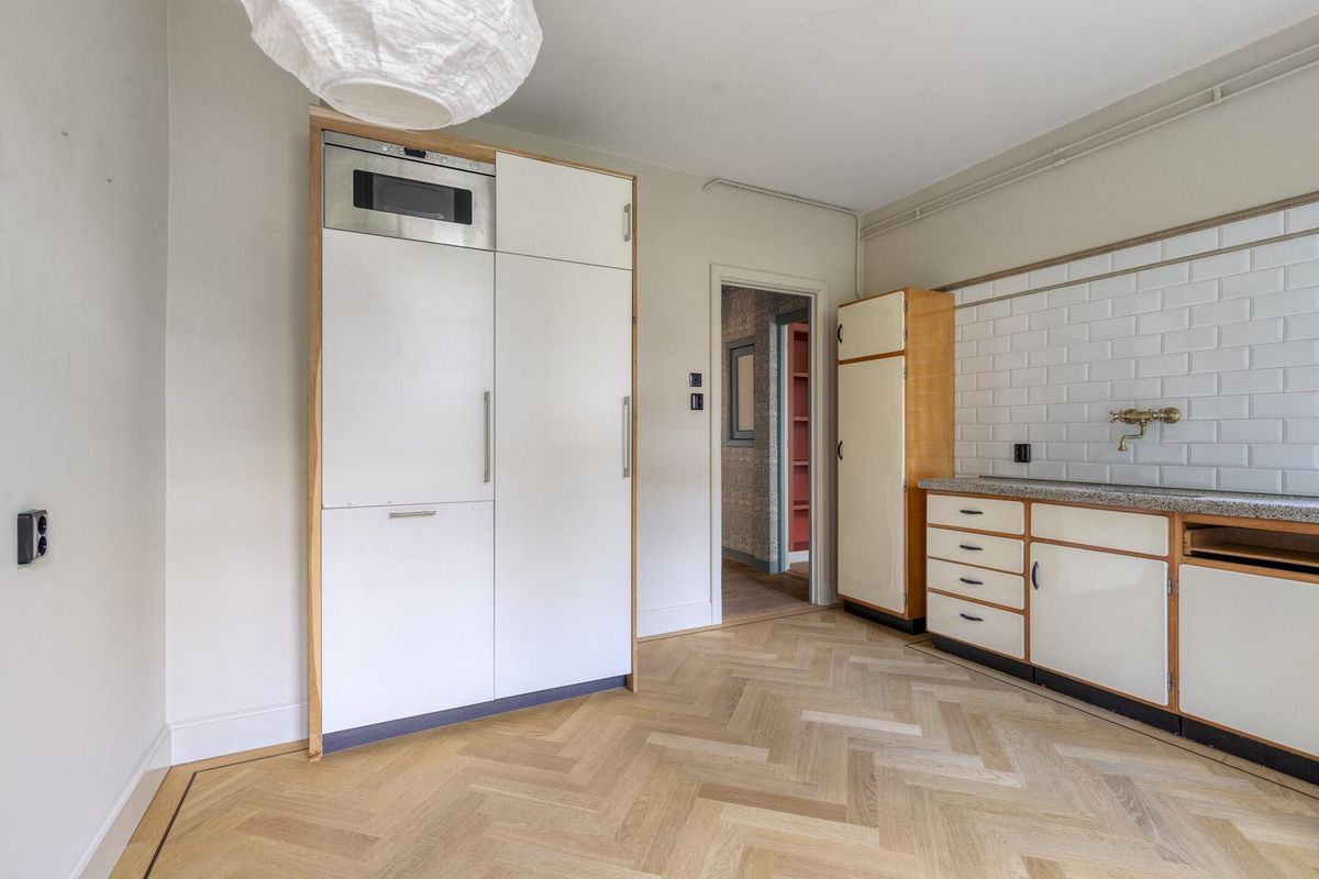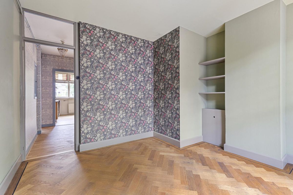 - Gehele woning is voorzien van een parketvloer en authentieke details, zoals glas-in-lood ramen in de schuifdeuren en in de bovenramen;