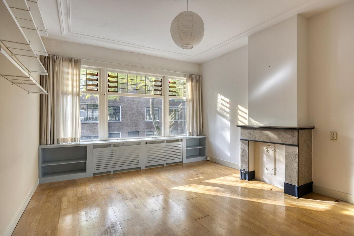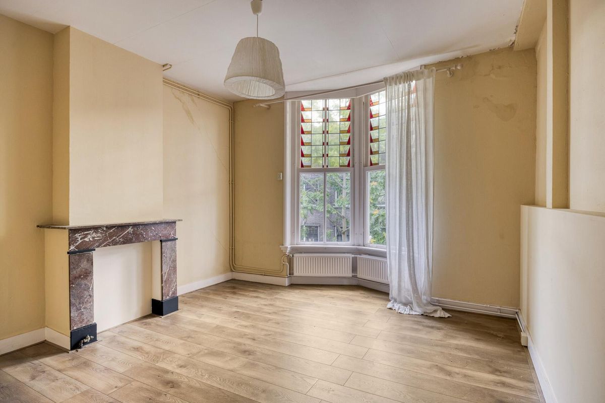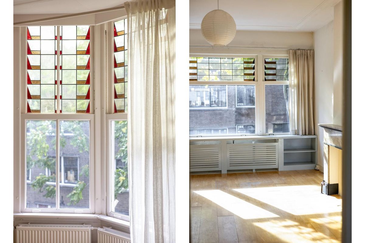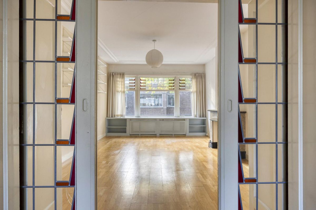 De woning heeft veel lichtinval en beschikt over een een zeer ruime woon-/eetkamer met en suite schuifdeuren, authentieke glas-in-lood bovenramen, vier slaapkamers en twee balkons.