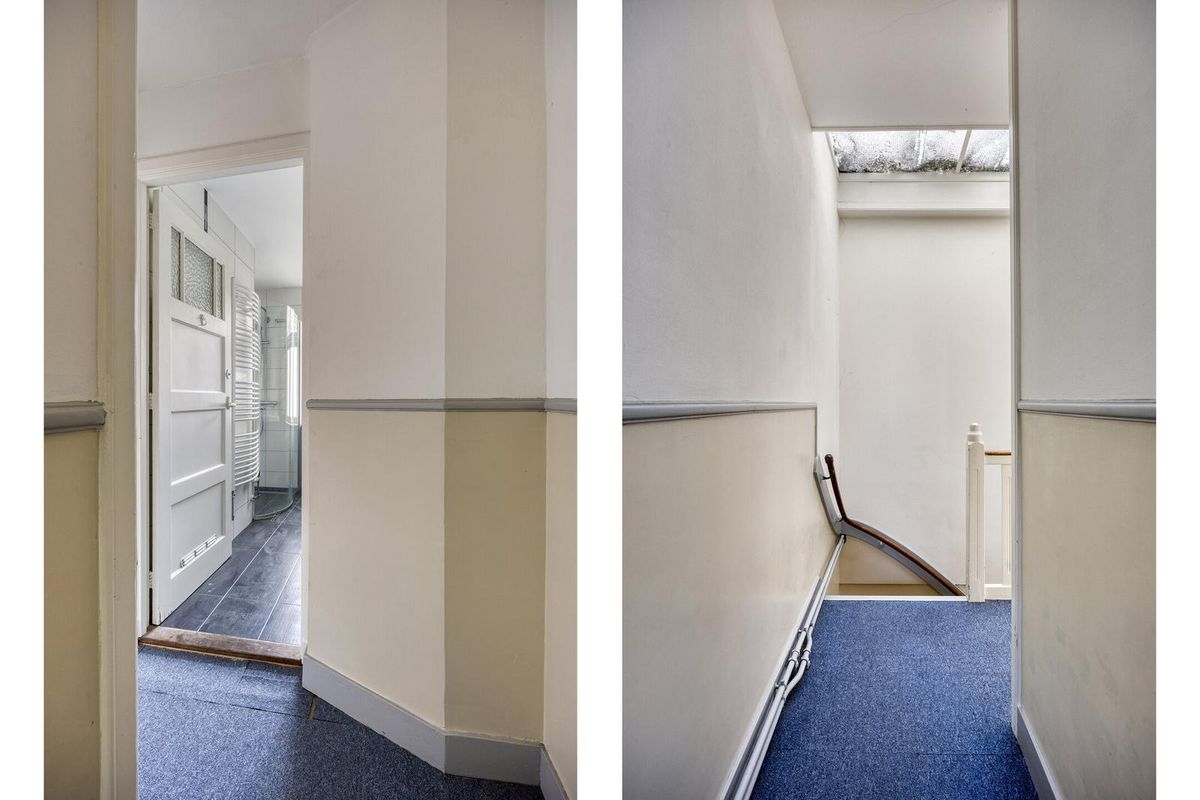 * Ruime overloop met trap naar vliering;