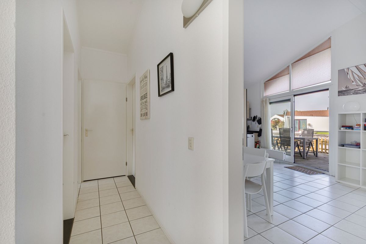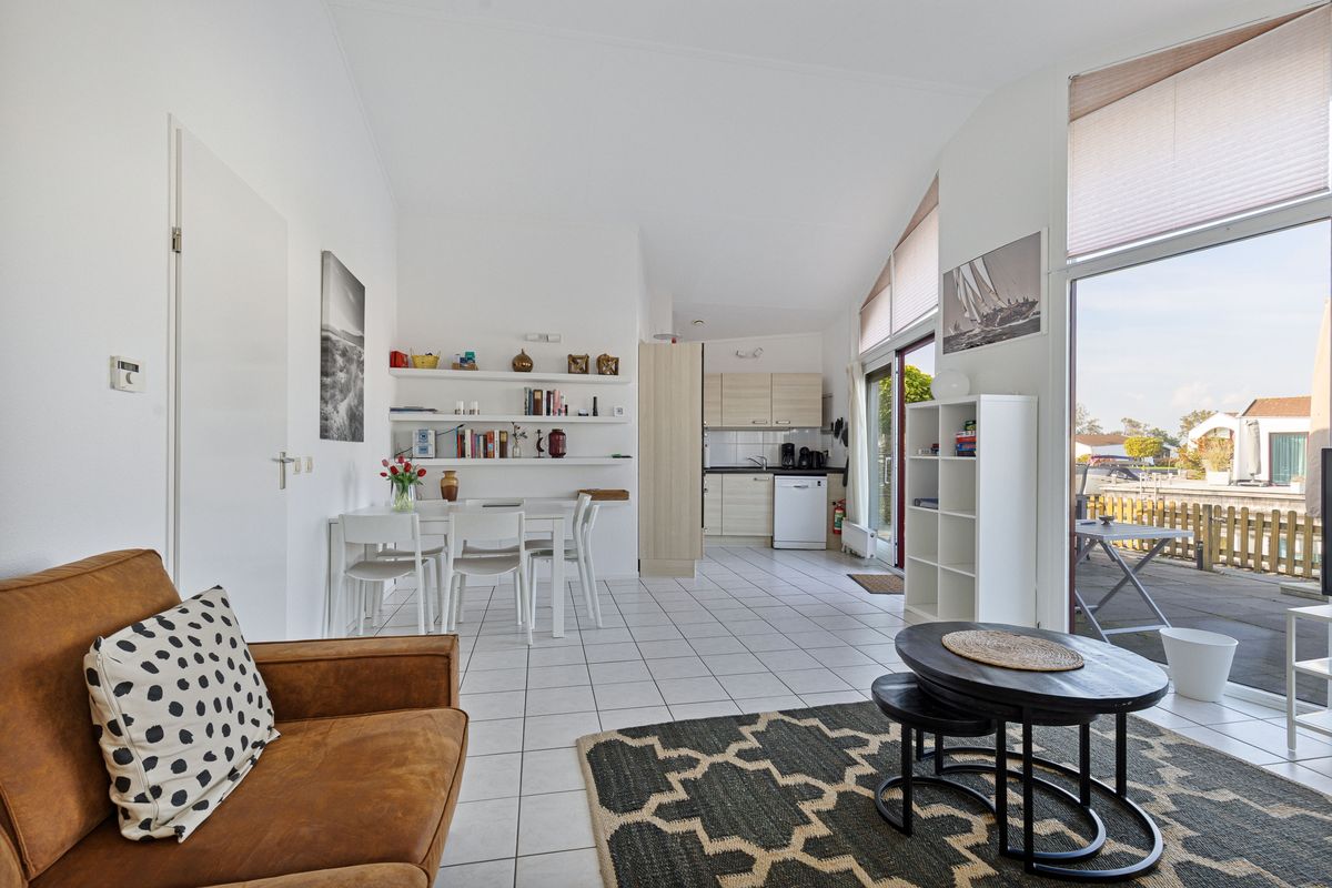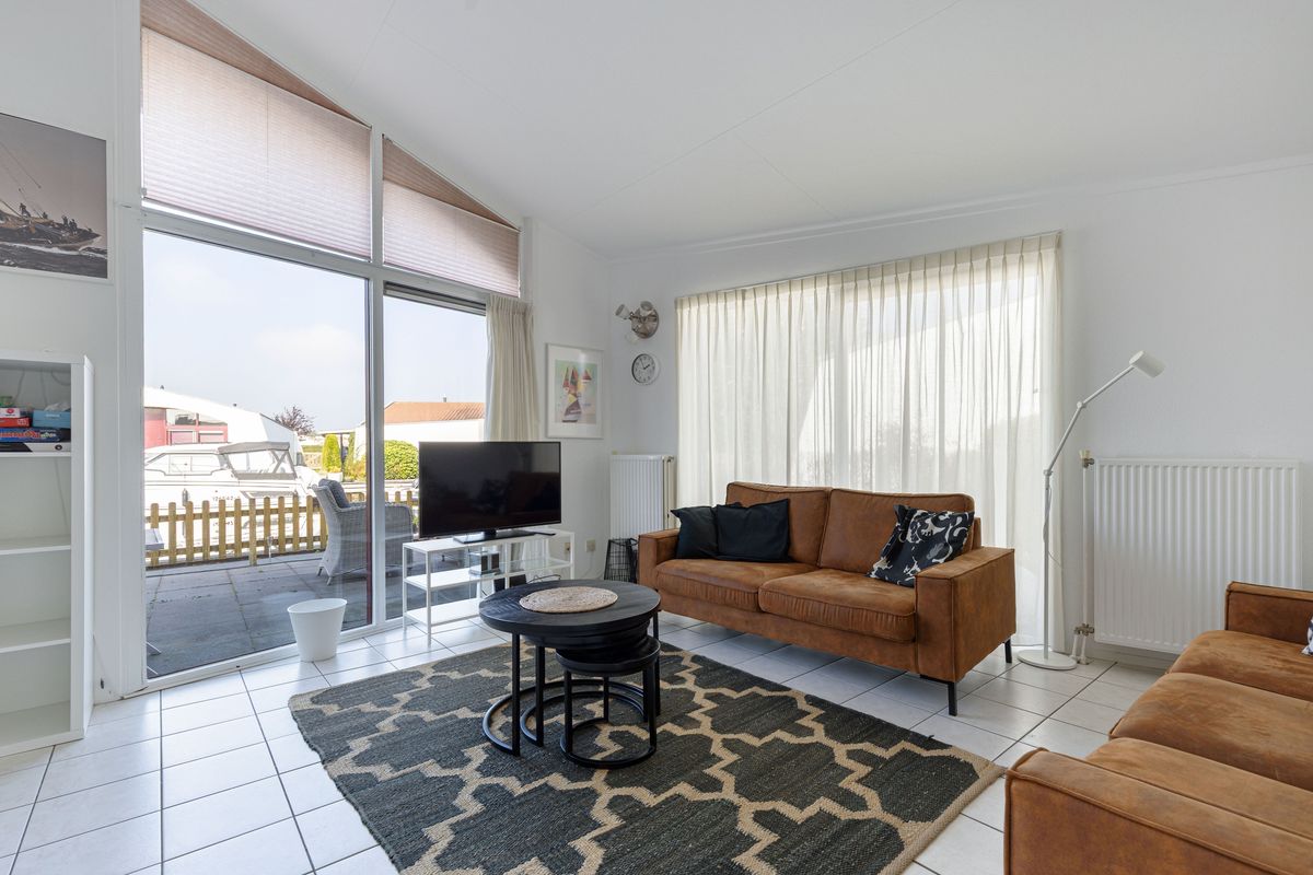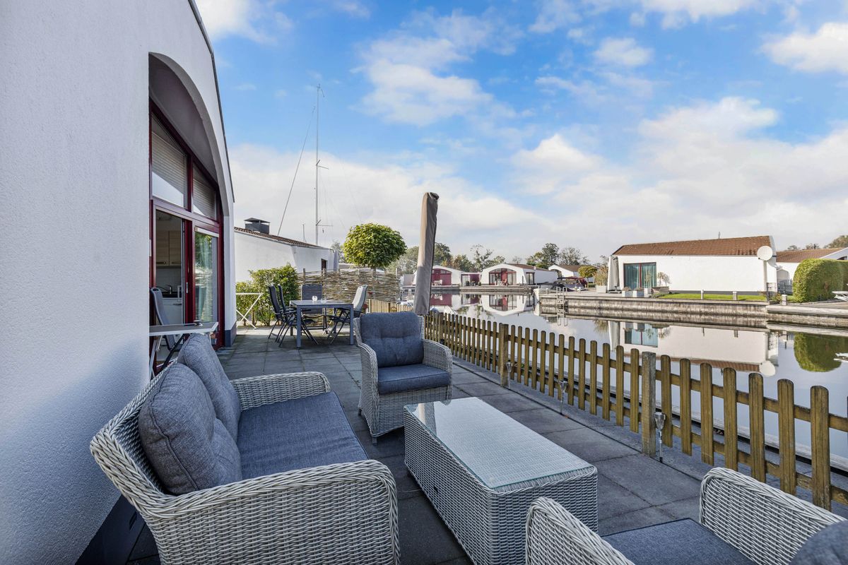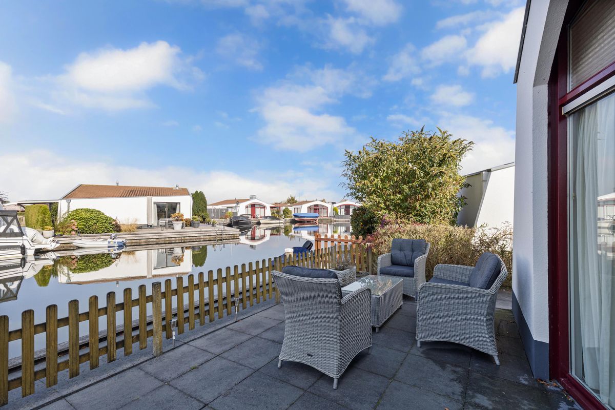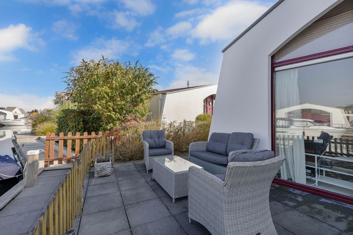 Binnen vindt u een lichte, tuingerichte woonkamer met schuifpui naar het terras aan het water. De halfopen keuken is voorzien van diverse inbouwapparatuur, waaronder een inductiekookplaat, afzuigkap, koelkast, oven en vaatwasser. De woning beschikt verder over twee ruime slaapkamers, een complete badkamer met ligbad, douche, modern wastafelmeubel en toilet, een separaat tweede toilet en een praktische inpandige berging met cv-opstelling en wasmachineaansluiting.