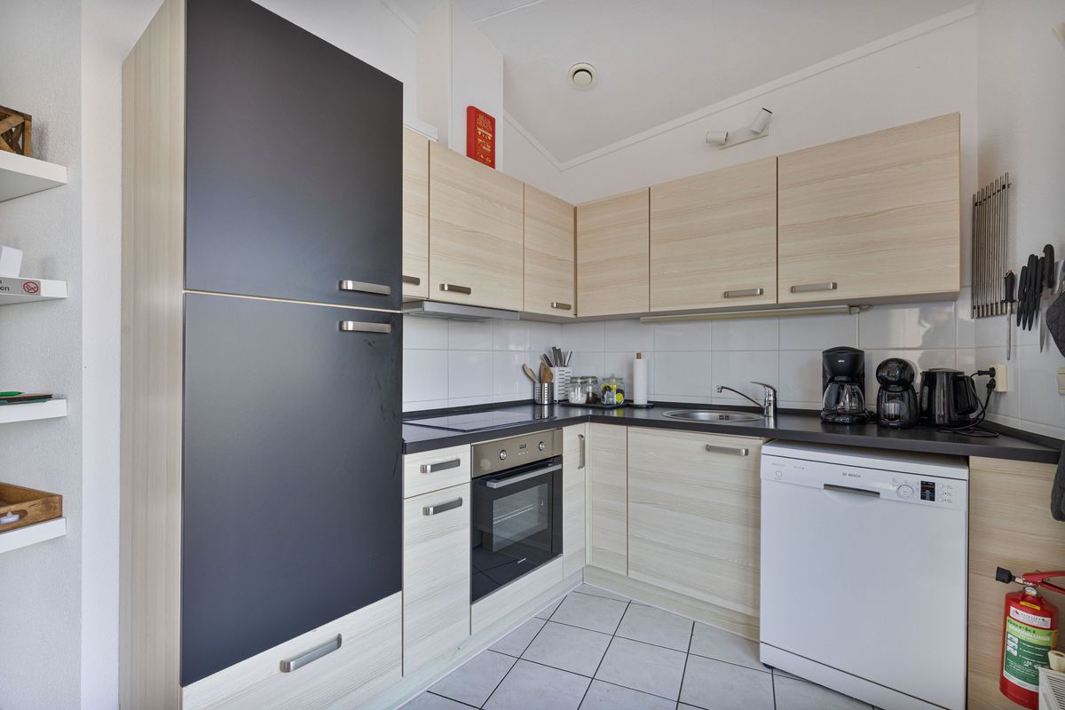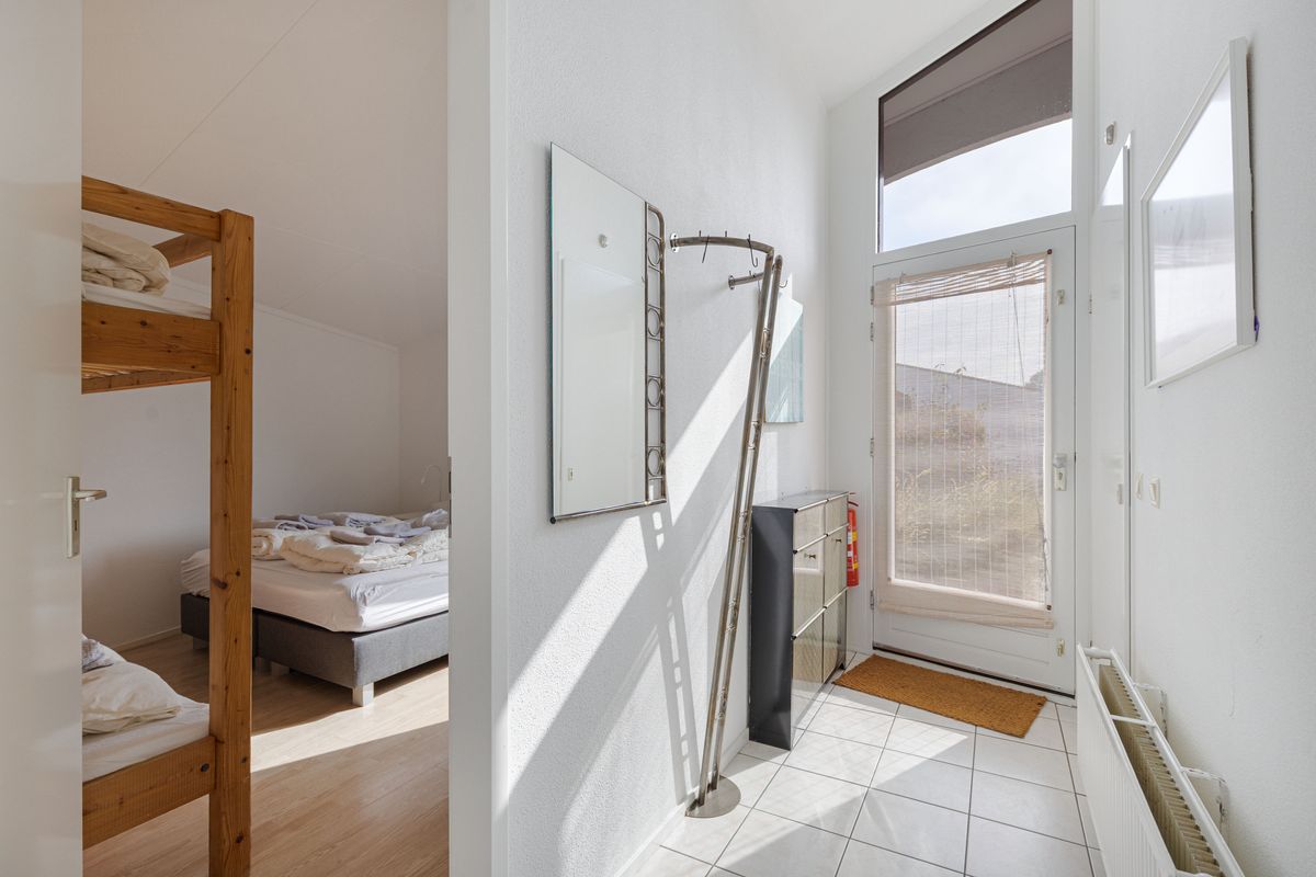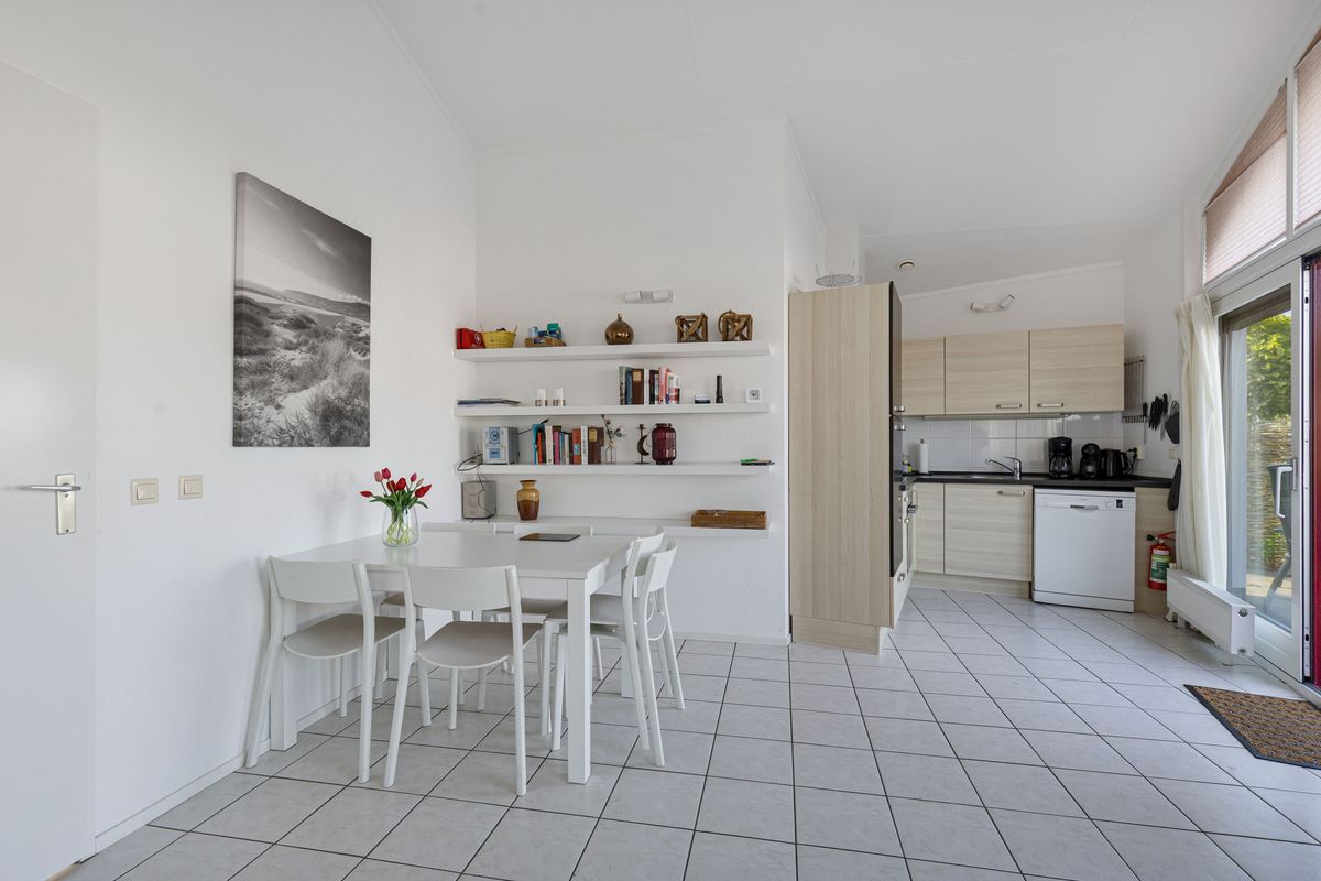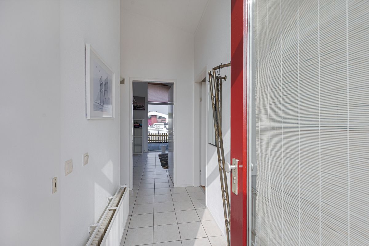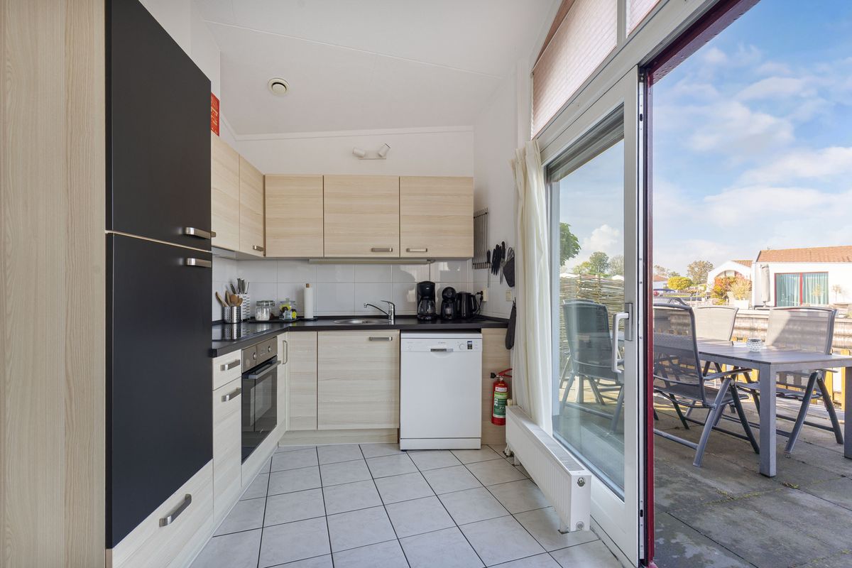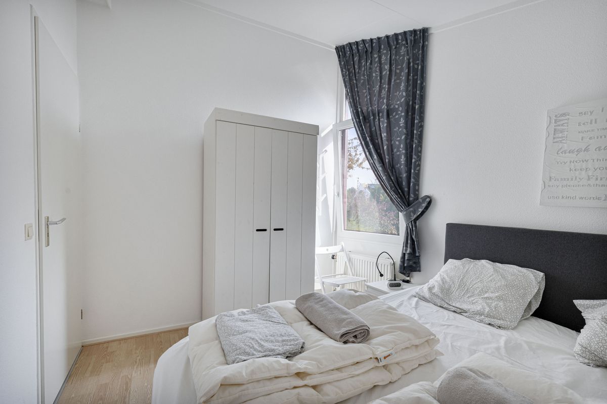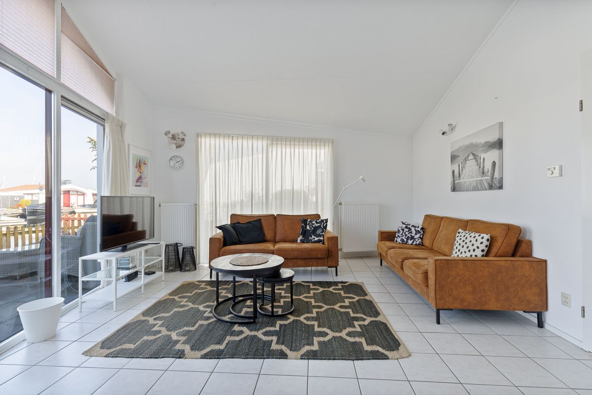 Binnen vindt u een lichte, tuingerichte woonkamer met schuifpui naar het terras aan het water. De halfopen keuken is voorzien van diverse inbouwapparatuur, waaronder een inductiekookplaat, afzuigkap, koelkast, oven en vaatwasser. De woning beschikt verder over twee ruime slaapkamers, een complete badkamer met ligbad, douche, modern wastafelmeubel en toilet, een separaat tweede toilet en een praktische inpandige berging met cv-opstelling en wasmachineaansluiting.