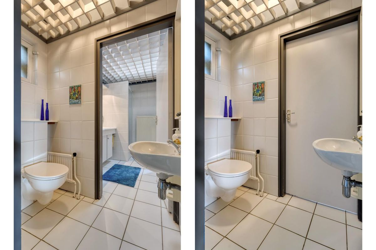Op de begane grond zijn er momenteel drie slaapkamers. Vanuit de woonkamer bereik je een ruime slaapkamer met kastenwand met aangrenzend de 1ste badkamer ingericht met een douchehoek en een dubbele wastafel. Het toilet is zowel via de badkamer als via de hal toegankelijk.