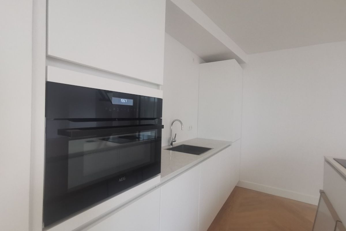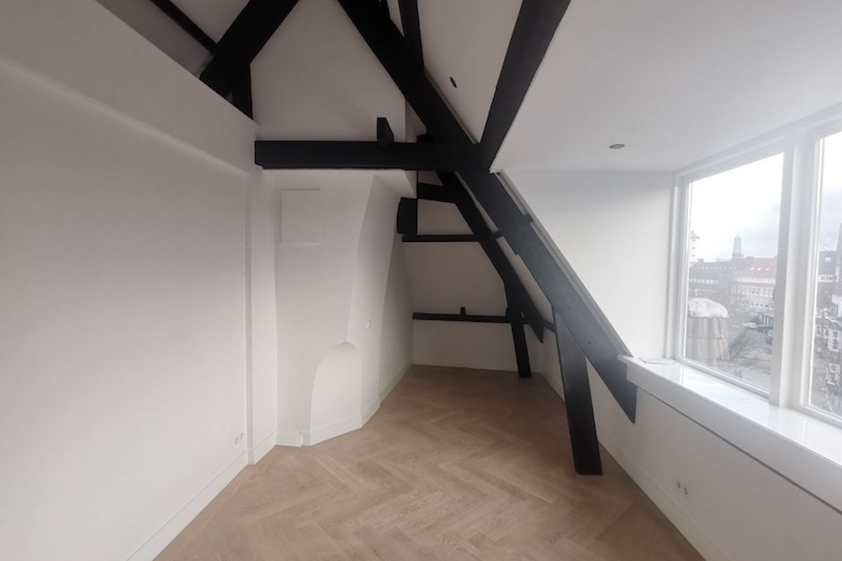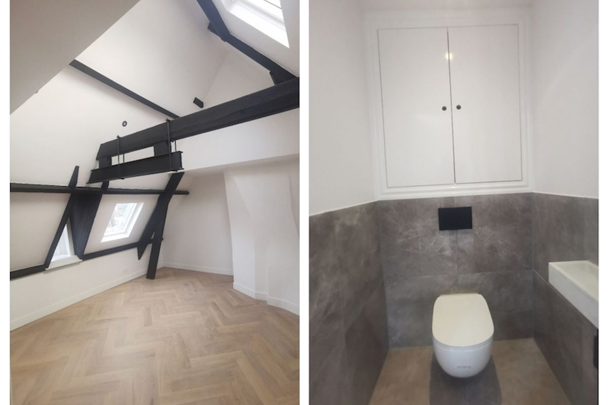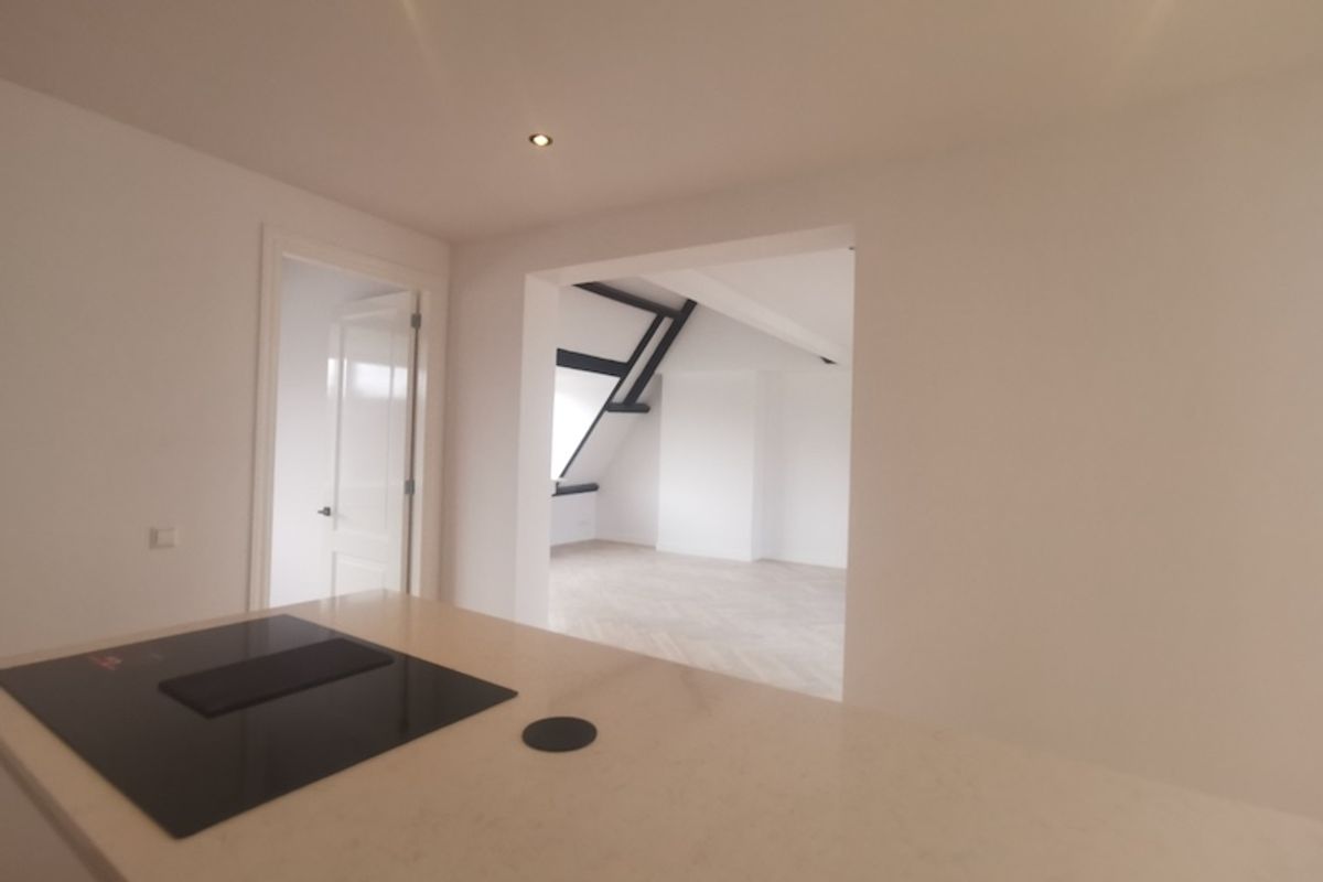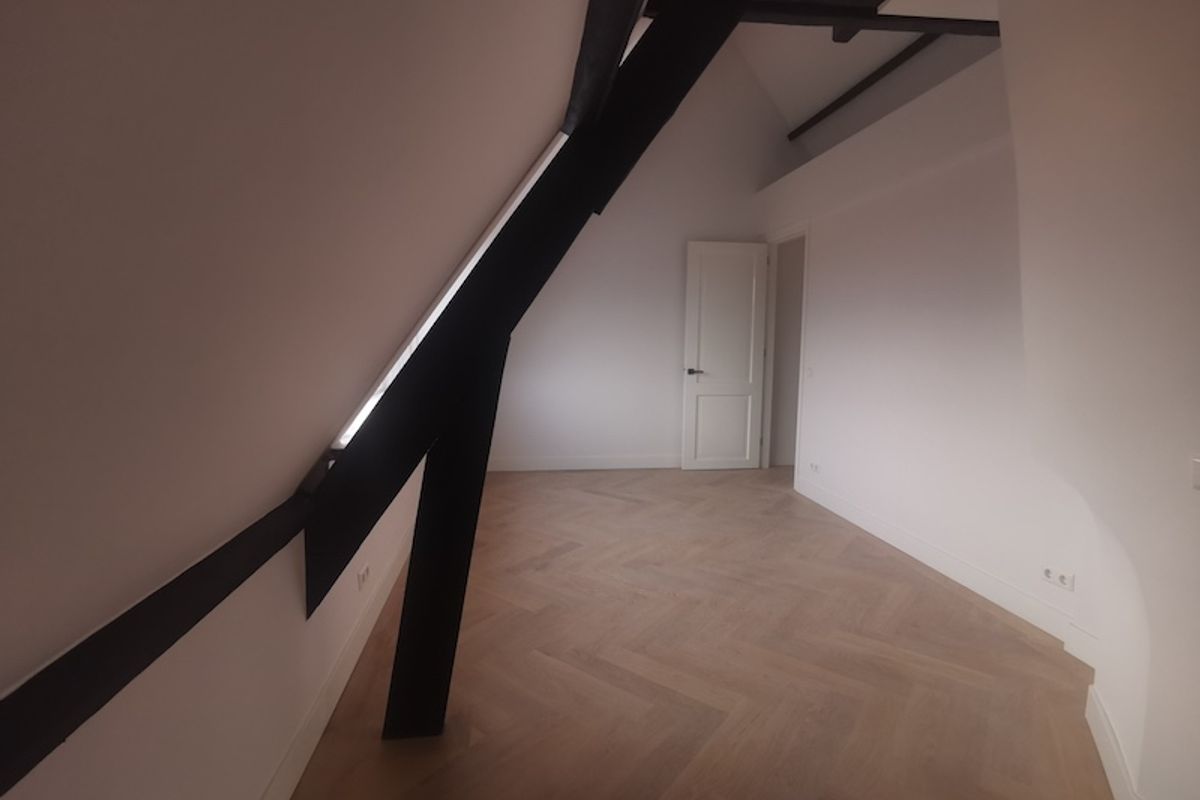 The completely renovated 3-room apartment (2 bedrooms) has a luxurious and contemporary look! The entrance on the ground floor leads to the house, located on the 4th floor. The spacious kitchen has a cooking island with built-in appliances, against the wall we find the other equipment such as a fridge-freezer and sink. The bedrooms are spacious and have high (sloping) ceilings. Don't forget the spacious roof terrace, where you can enjoy the summer in the coming months! The house is delivered unfurnished and can therefore be furnished to your own taste!