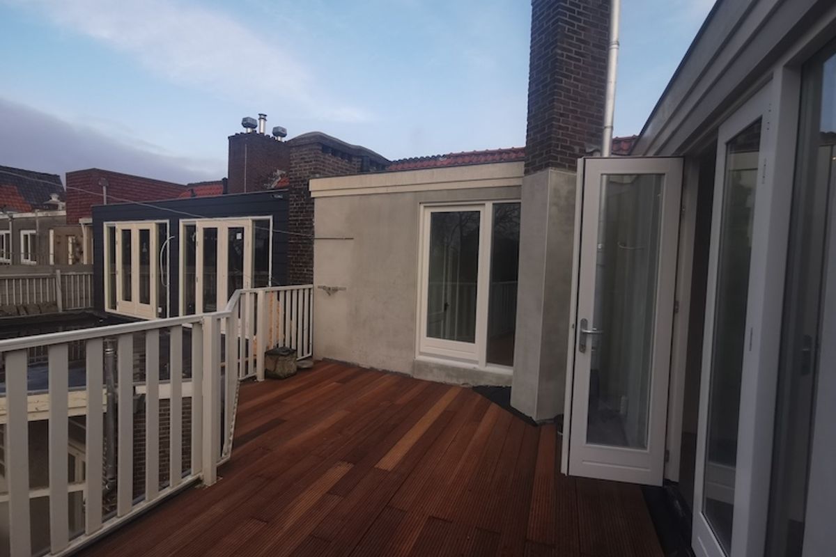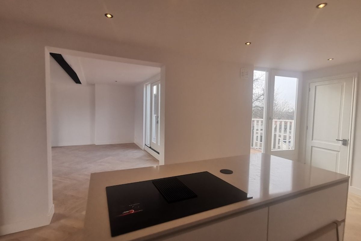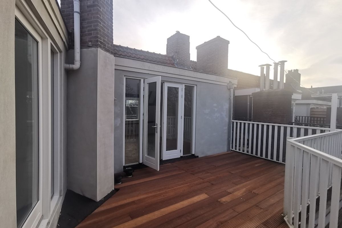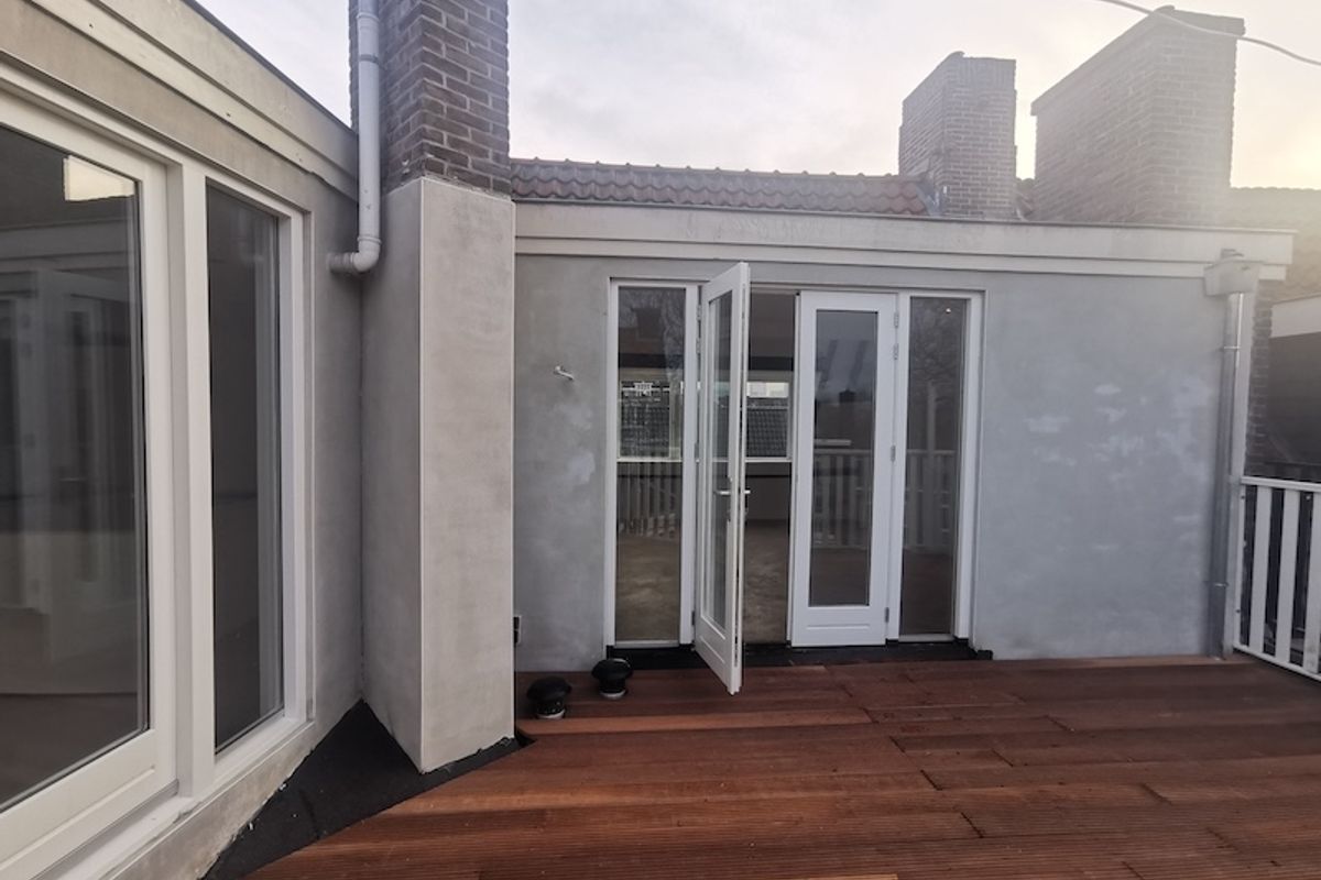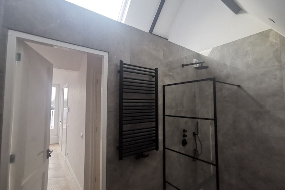 The completely renovated 3-room apartment (2 bedrooms) has a luxurious and contemporary look! The entrance on the ground floor leads to the house, located on the 4th floor. The spacious kitchen has a cooking island with built-in appliances, against the wall we find the other equipment such as a fridge-freezer and sink. The bedrooms are spacious and have high (sloping) ceilings. Don't forget the spacious roof terrace, where you can enjoy the summer in the coming months! The house is delivered unfurnished and can therefore be furnished to your own taste!