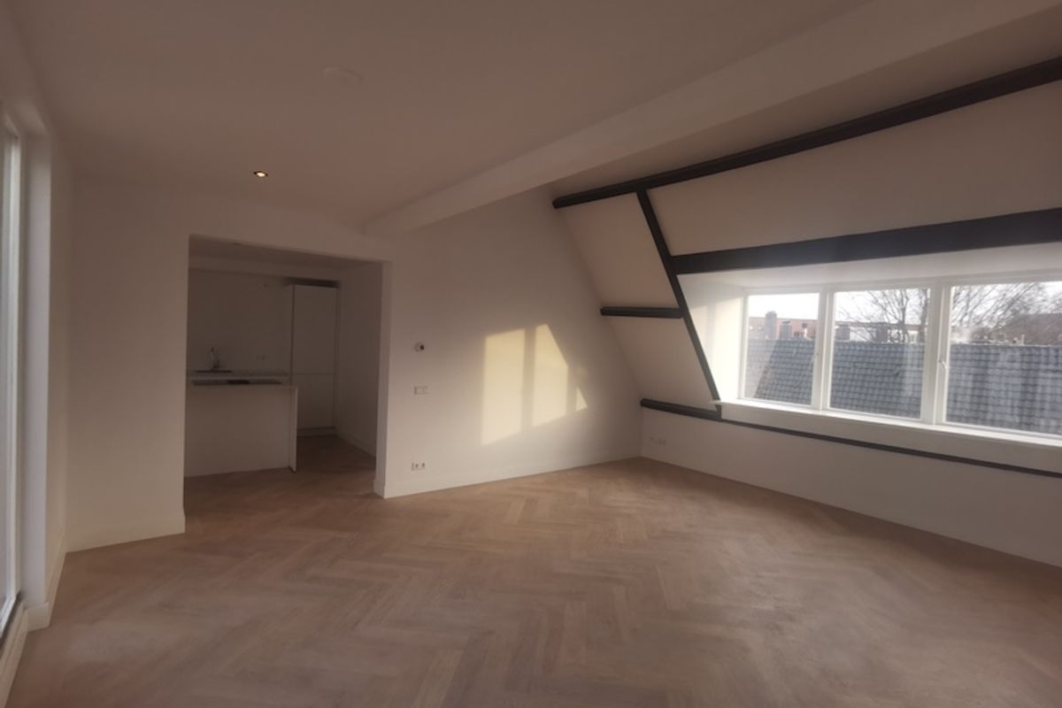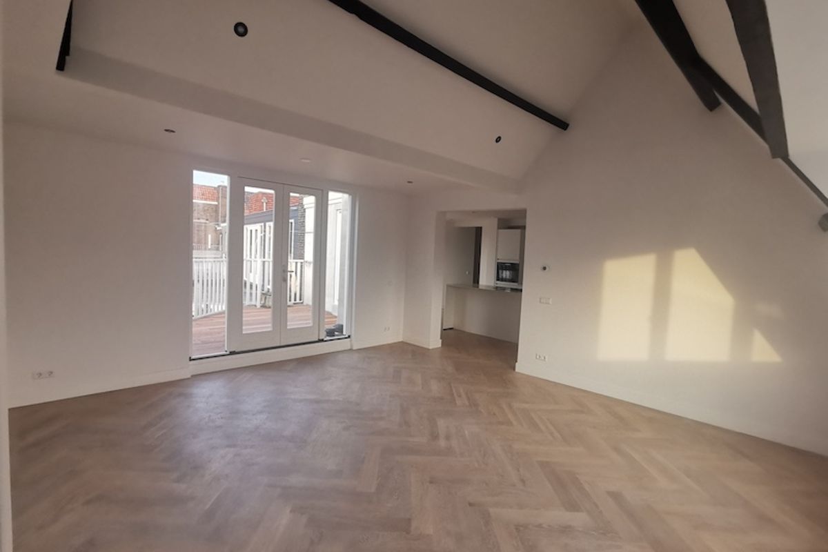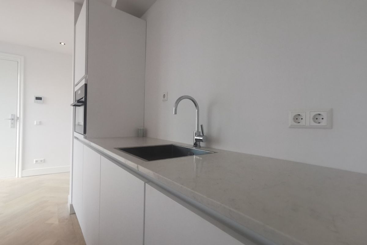 Het geheel gerenoveerde 3-kamer appartement (2 slaapkamers) kent een luxe en hedendaagse uitstraling! Via de entree op de begane grond komt men bij de woning, gelegen op de 4e etage. De ruime keuken is voorzien van een kookeiland met inbouwapparatuur, tegen de muur vinden we de overige apparatuur zoals een koel-vriescombinatie en spoelbak. De slaapkamers zijn groots opgezet en beschikken over hoge (schuine) plafonds. Vergeet ook het ruime dakterras niet, waar men de komende maanden heerlijk van de zomer kan genieten! De woning wordt gestoffeerd opgeleverd en is dus helemaal naar eigen smaak in te richten!