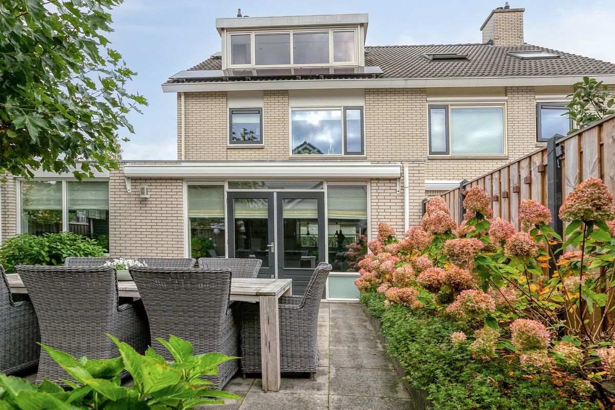 Achter de woning ligt een riante en zonnige achtertuin, die grotendeels is bestraat maar ook voorzien is van fraai groen. Dankzij de gunstige ligging geniet u hier van veel zonuren en volop privacy. Er is meer dan genoeg ruimte voor een loungehoek, eettafel of zomerse barbecue. Achterin de tuin bevindt zich een overkapping en een berging, ideaal voor tuinmeubilair of fietsen. Hier ervaart u het echte buitenleven, midden in de woonwijk.