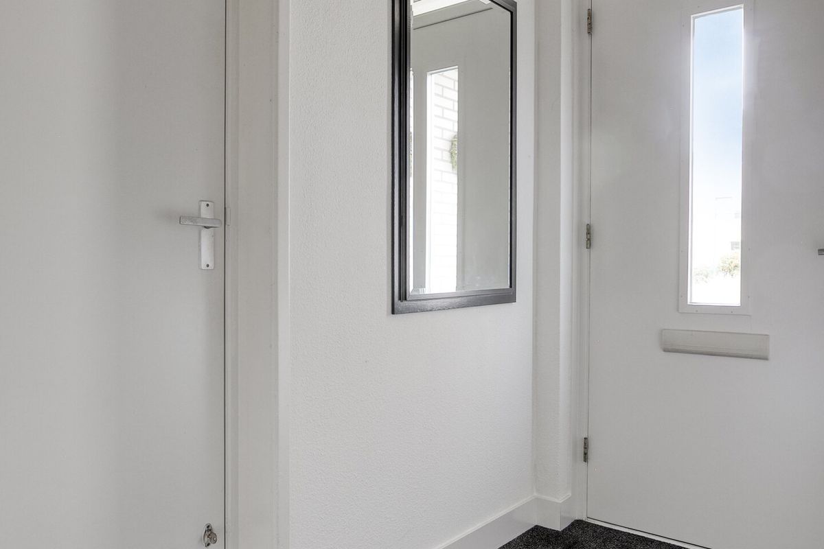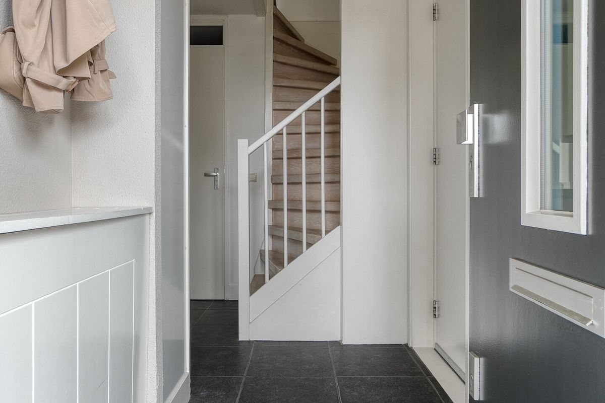 Via de verzorgde voortuin en de eigen oprit bereikt u de entree van de woning. Hier is ruimte genoeg om meerdere auto’s te parkeren, terwijl er in de directe omgeving eveneens voldoende parkeergelegenheid is. Eenmaal binnen komt u in de ruime hal, die toegang biedt tot het toilet, de woonkamer, de garage en de trap naar de eerste verdieping. De nette afwerking en de lichte uitstraling zorgen direct voor een prettige eerste indruk.