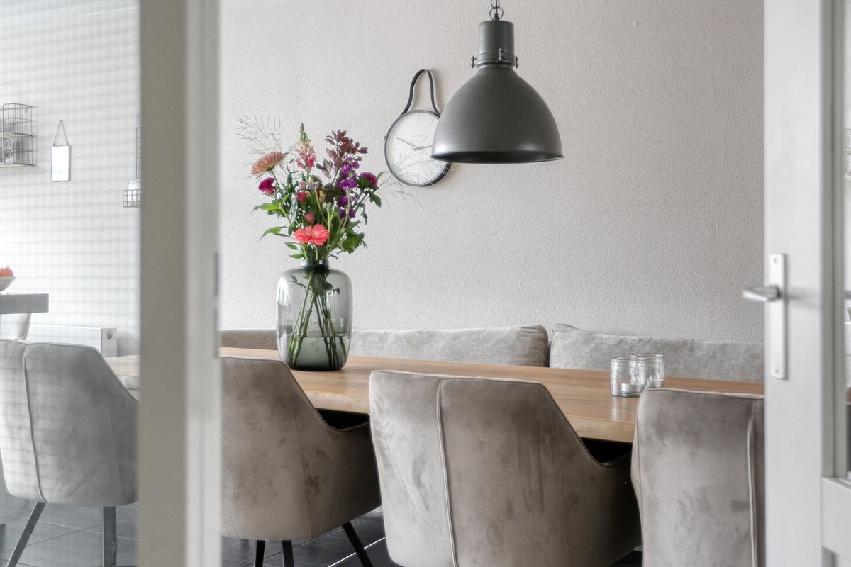 Aan de voorzijde bevindt zich de moderne, U-vormige keuken, die in open verbinding staat met de woonkamer. Hier beschikt u over een compleet keukenblok met Boretti gasfornuis met oven, ingebouwde stoom-ovencombinatie, koelkast, vaatwasser, spoelbak en voldoende opbergruimte in zowel lades als kastjes. De moderne uitstraling, gecombineerd met het praktische barretje, maakt dit een fijne plek om te koken én samen te komen.