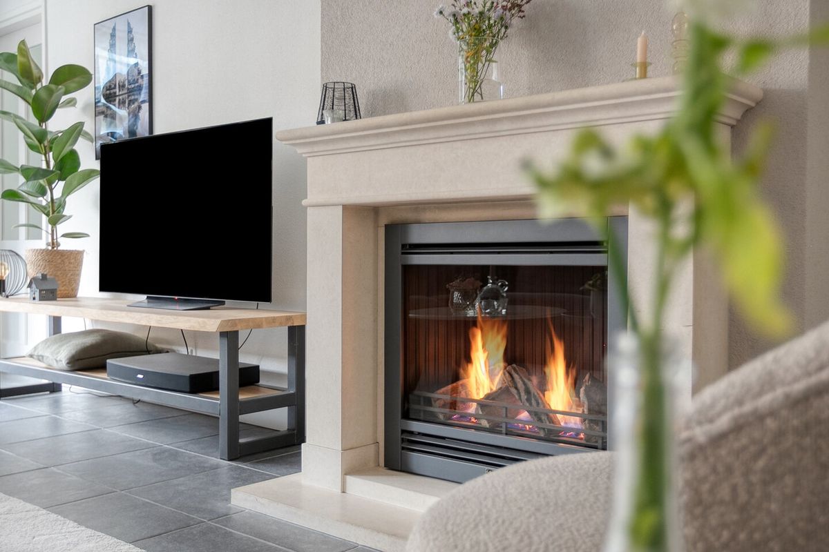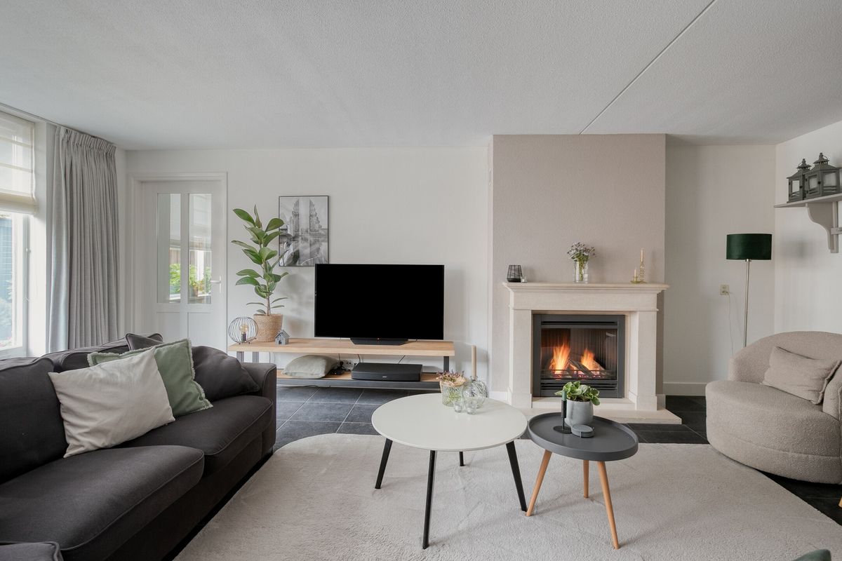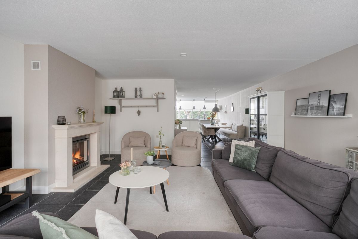 Vervolgens betreedt u de royale woonkamer, die uitblinkt door zijn open indeling en grote raampartijen. De overvloed aan licht geeft de ruimte een warme en uitnodigende sfeer. De woonkamer biedt volop mogelijkheden om een comfortabele zithoek en een sfeervolle eethoek te creëren. Eyecatcher is de haard, die niet alleen warmte, maar ook karakter toevoegt aan het interieur. Aansluitend aan de woonkamer is een ruime kantoorruimte, ideaal om wonen en werken te combineren of om een aparte ruimte te creëren voor de kinderen. Dankzij de openslaande deuren naar de achtertuin loopt binnen en buiten hier naadloos in elkaar over.