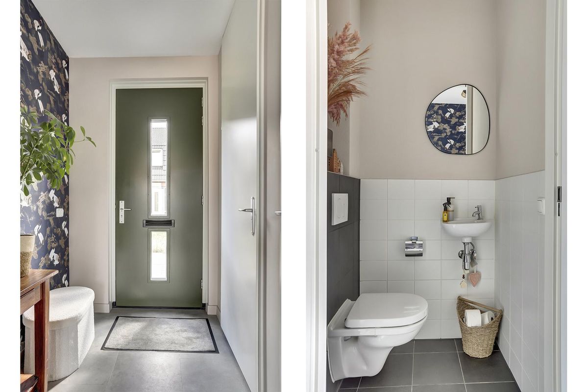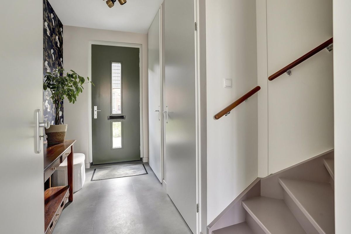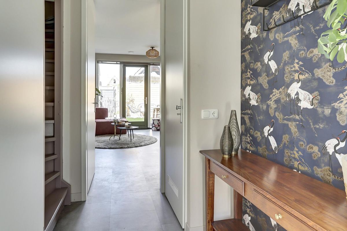 Entree met hal, meterkast, cv-ruimte en toilet met fontein. Vanuit de hal toegang tot de lichte woonkamer met openslaande deur naar de tuin. De open keuken is compleet uitgerust met moderne inbouwapparatuur: inductiekookplaat, vaatwasser, koelkast/vriezer en combi-oven.