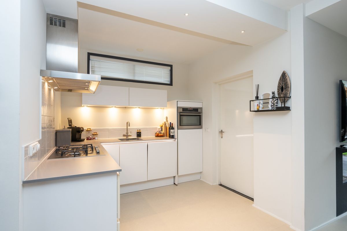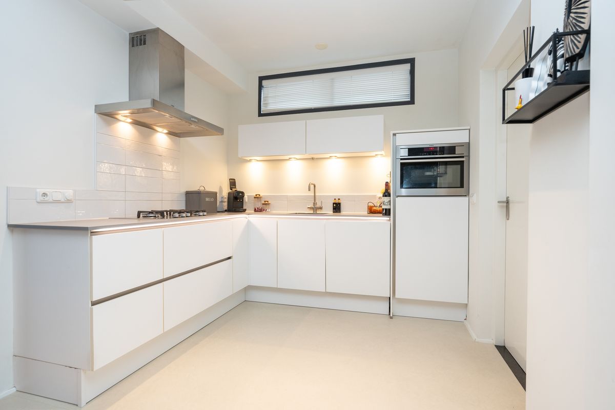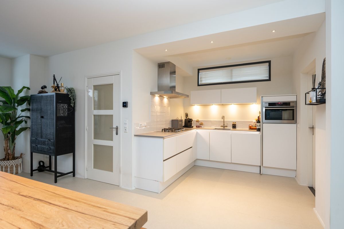 De keuken is modern uitgevoerd en voorzien van luxe inbouwapparatuur, waaronder een 5-pits gasfornuis, combi-oven, afzuigkap, vaatwasser en Quooker.