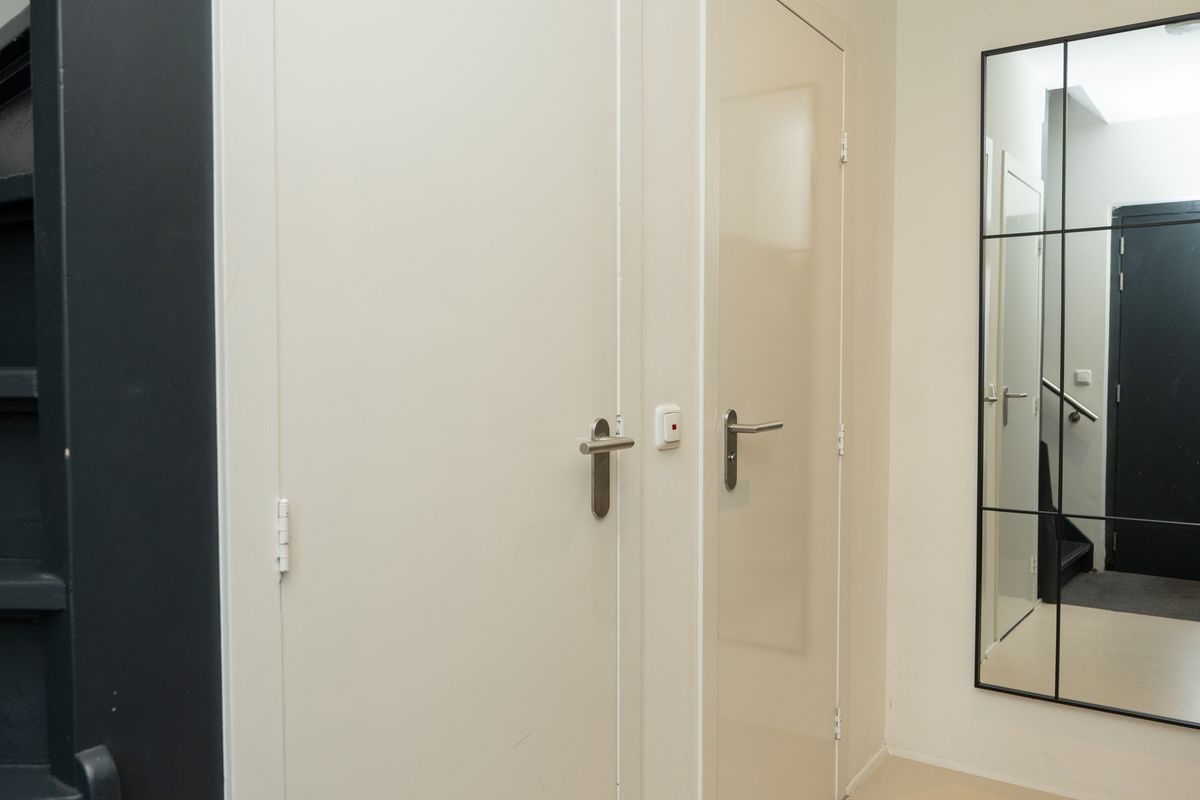 Via de entree komt u in de hal met trapopgang, trapkast, meterkast en modern toilet. Vanuit de hal bereikt u de lichte, sfeervolle woonkamer met veel daglicht door de grote raampartijen, een gezellige erker aan de voorzijde en een schuifpui naar de achtertuin.