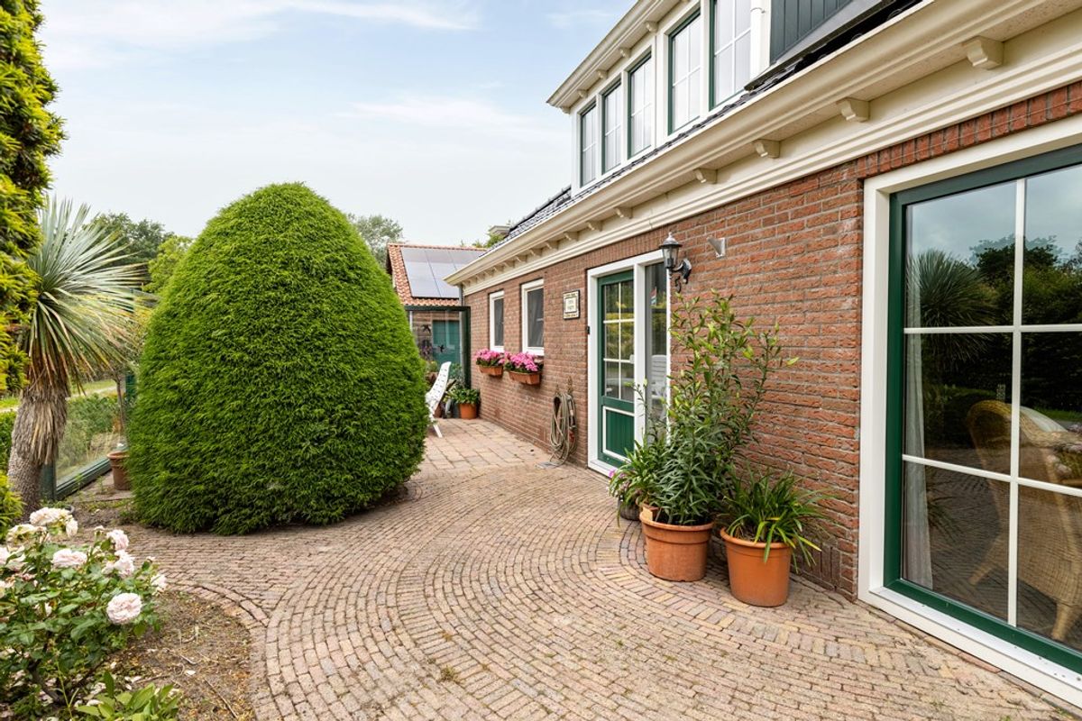 Rondom de woning is een prachtige tuin met grote kweekkas. De tuin is ideaal voor liefhebbers van natuur en buitenleven en is in verschillende delen opgesplitst. Hierdoor heb je overal weer een nieuwe kijk en maakt de tuin speels en aantrekkelijk, ook met de verschillende ornamenten. De sfeervolle vijvers vormen het hart van de tuin en trekt vogels en vlinders aan, wat zorgt voor een levendige en rustgevende sfeer. Voor de hobby tuinder is er een grote kas met fruitbomen, die perfect is voor het zelf kweken van groenten, kruiden of bloemen. Daarnaast is er een eigen waterbron geslagen voor het sproeien/watergeven in kas en tuin.
