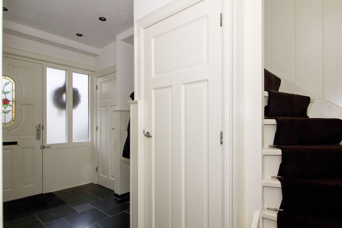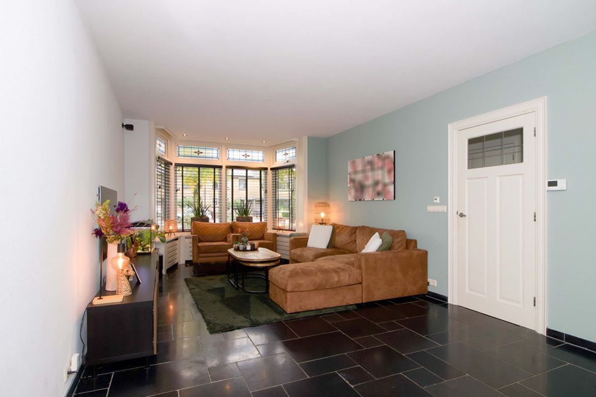 De hal biedt toegang tot de sfeervolle woonkamer aan de voorzijde van de woning. Dankzij de erker aan de voorzijde geniet de woonkamer van veel natuurlijk licht en een prettige sfeer. De ruimte biedt voldoende plaats voor een comfortabele zithoek en is fraai verbonden met het eetgedeelte aan de achterzijde.