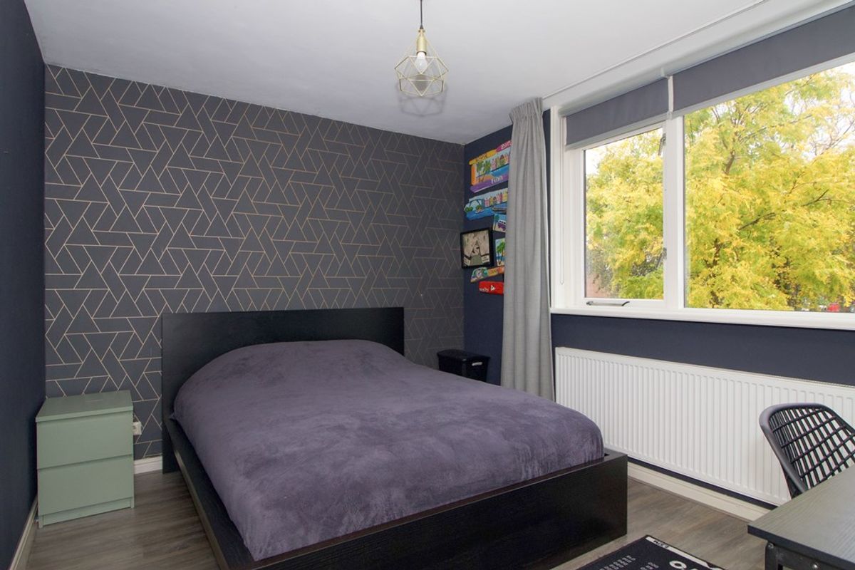 De slaapkamer aan de voorzijde heeft eveneens een prettige indeling en is ideaal als kinderkamer, werkkamer of logeerkamer.