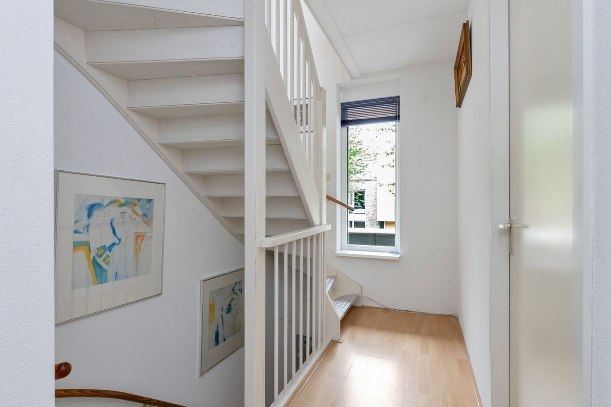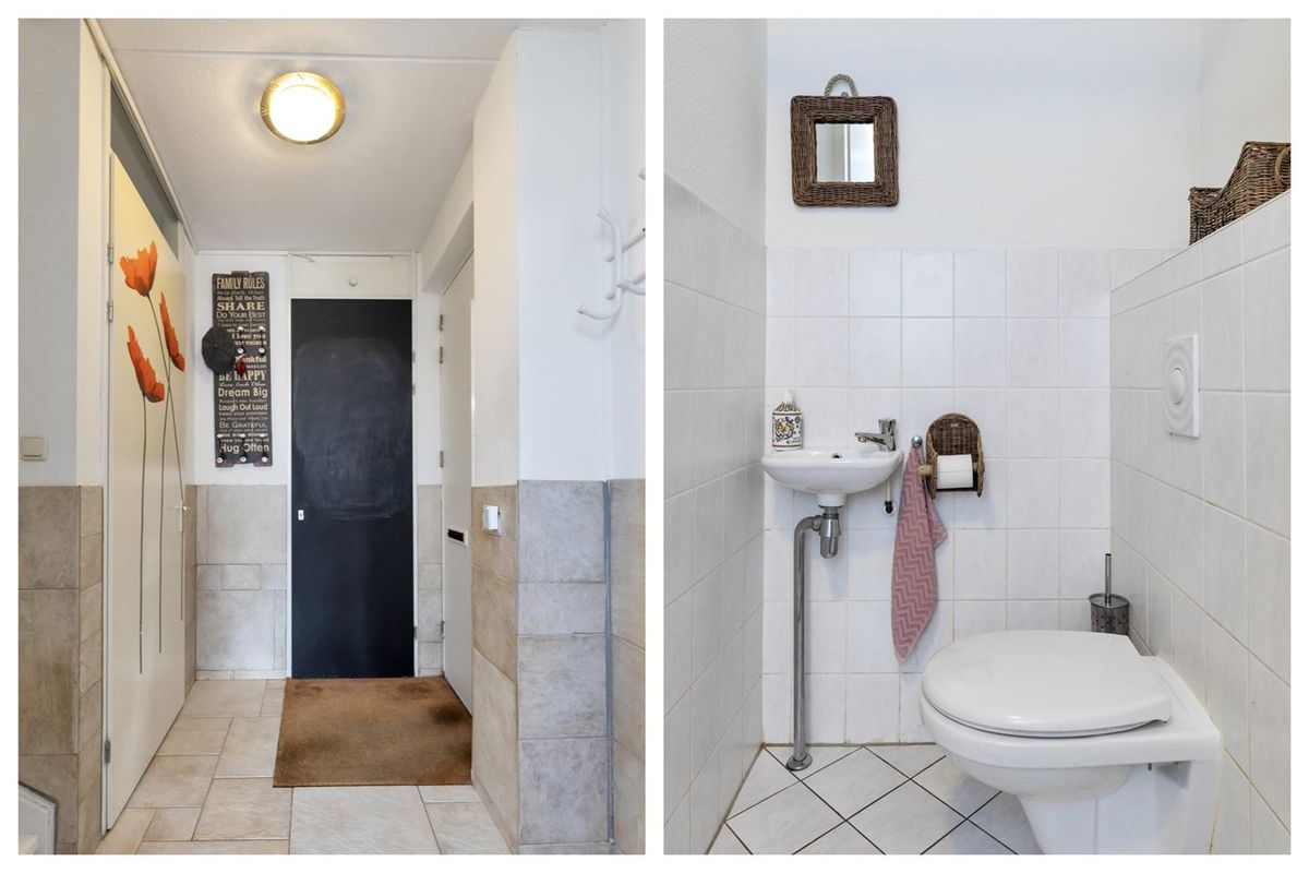 - Entree met meterkast met aansluiting glasvezel, hangend toilet met fontein en toegang tot het leefgedeelte trap naar de 1e verdieping.