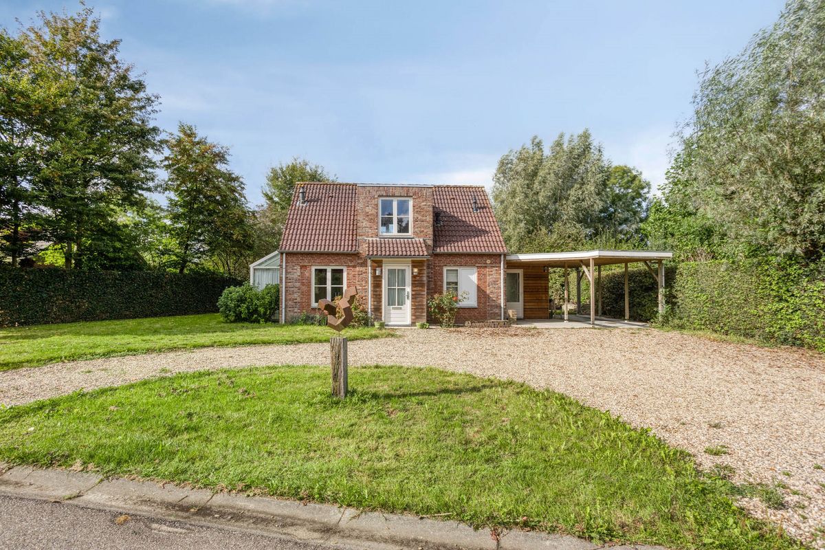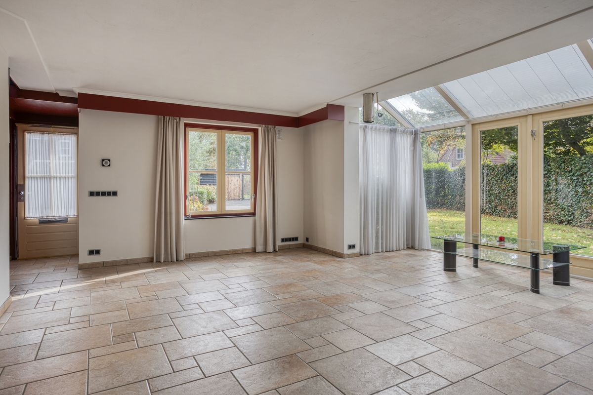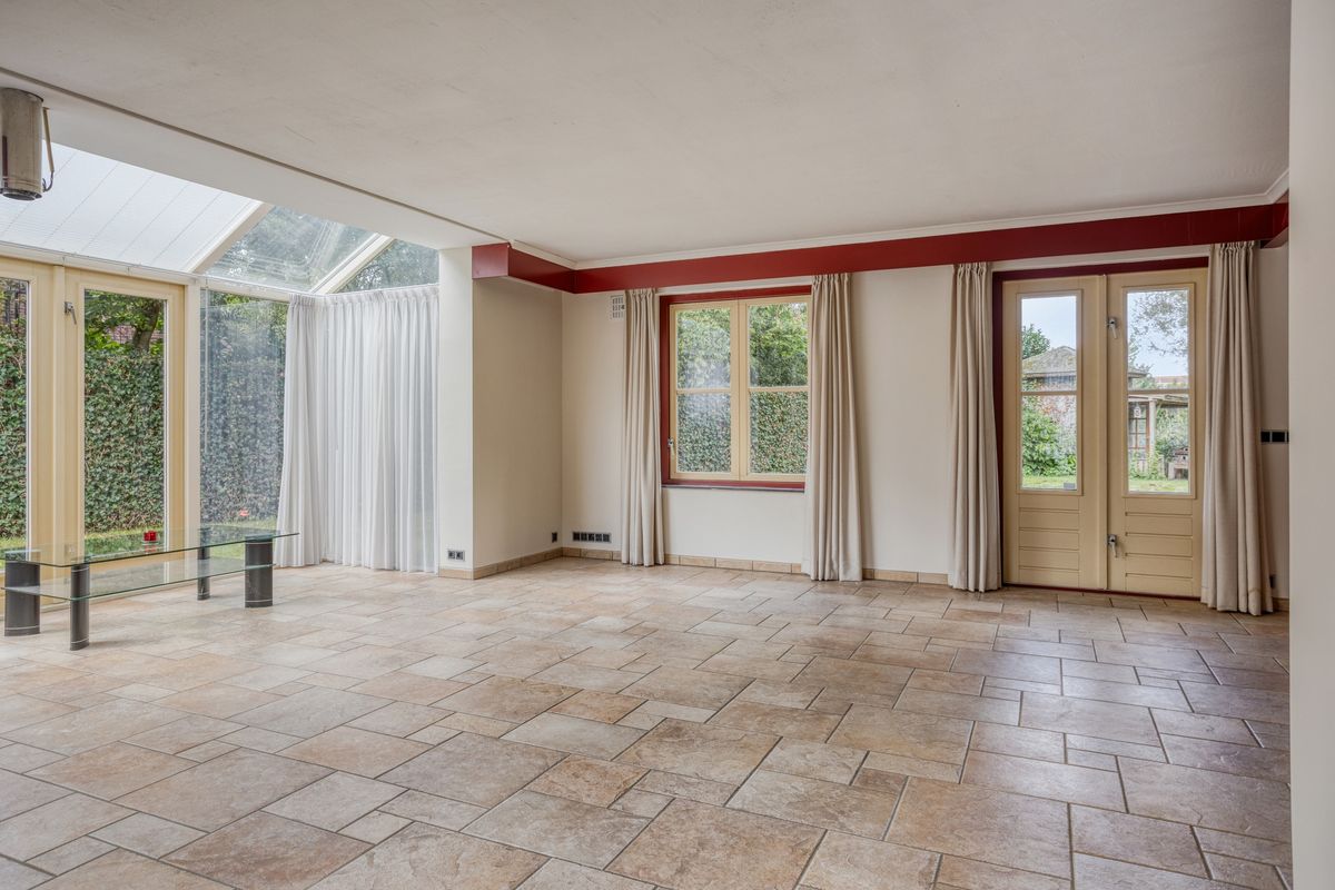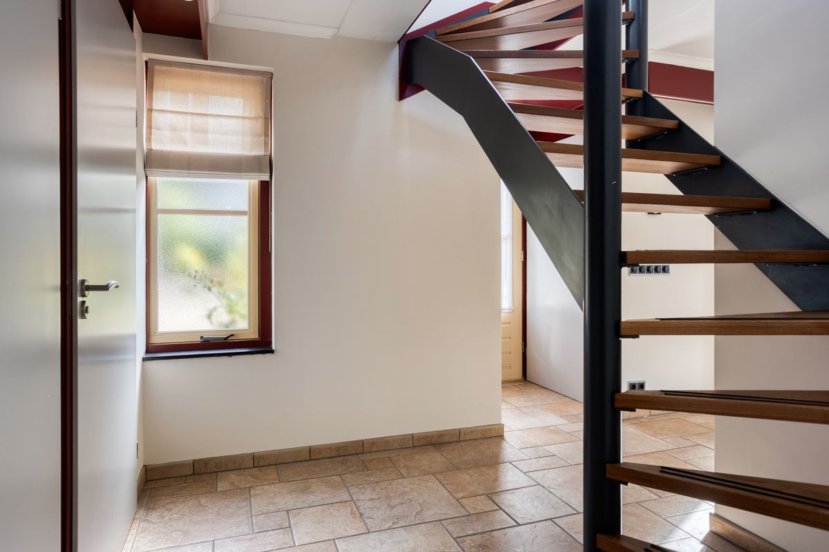 Ruime entree met garderobe, meterkast, trapopgang met vaste wenteltrap. Zeer royale woonkamer met plavuizen met openslaande tuindeuren naar de tuin, aansluiting voor een houtkachel en eetgedeelte met openslaande tuindeuren naar het terras en de achtertuin, open woonkeuken met kookeiland, voorzien van gaskookstel, oven, koelkast, vriezer, vaatwasser en afzuigkap en voldoende ruimte voor eettafel. De gehele begane grond is drempelloos en betegeld. Vanuit de keuken is er toegang tot de bijkeuken met wasmachine aansluiting en genoeg ruimte voor een droger en wasmachine.