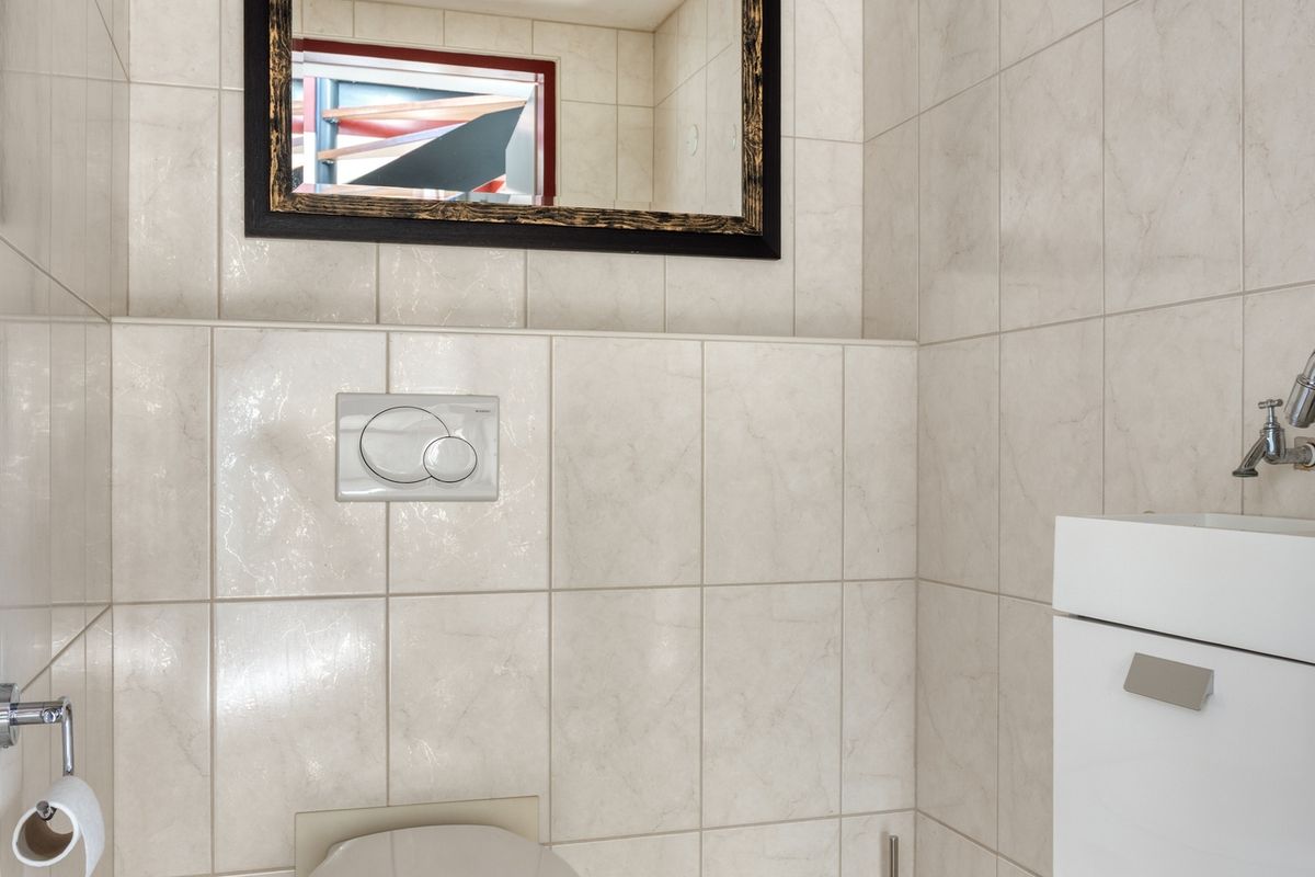 Ruime opgezet met slaapgedeelte, ruim ligbad en wastafel en wc. Vloerverwarming aanwezig. Tevens berging met CV.