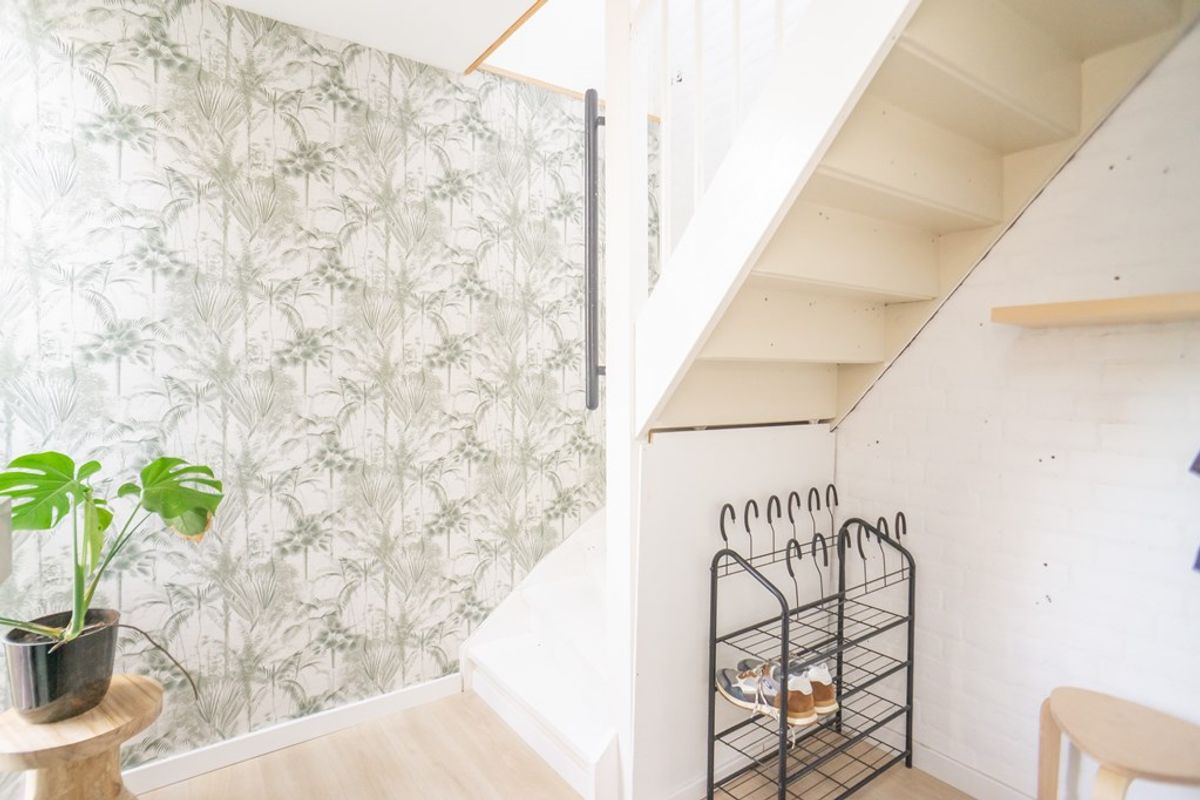 De entree van het appartement is voorzien van garderobe en de trap naar de 3e verdieping waar u het woongedeelte van het appartement vindt.