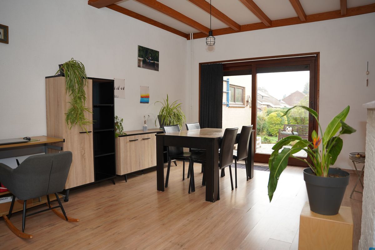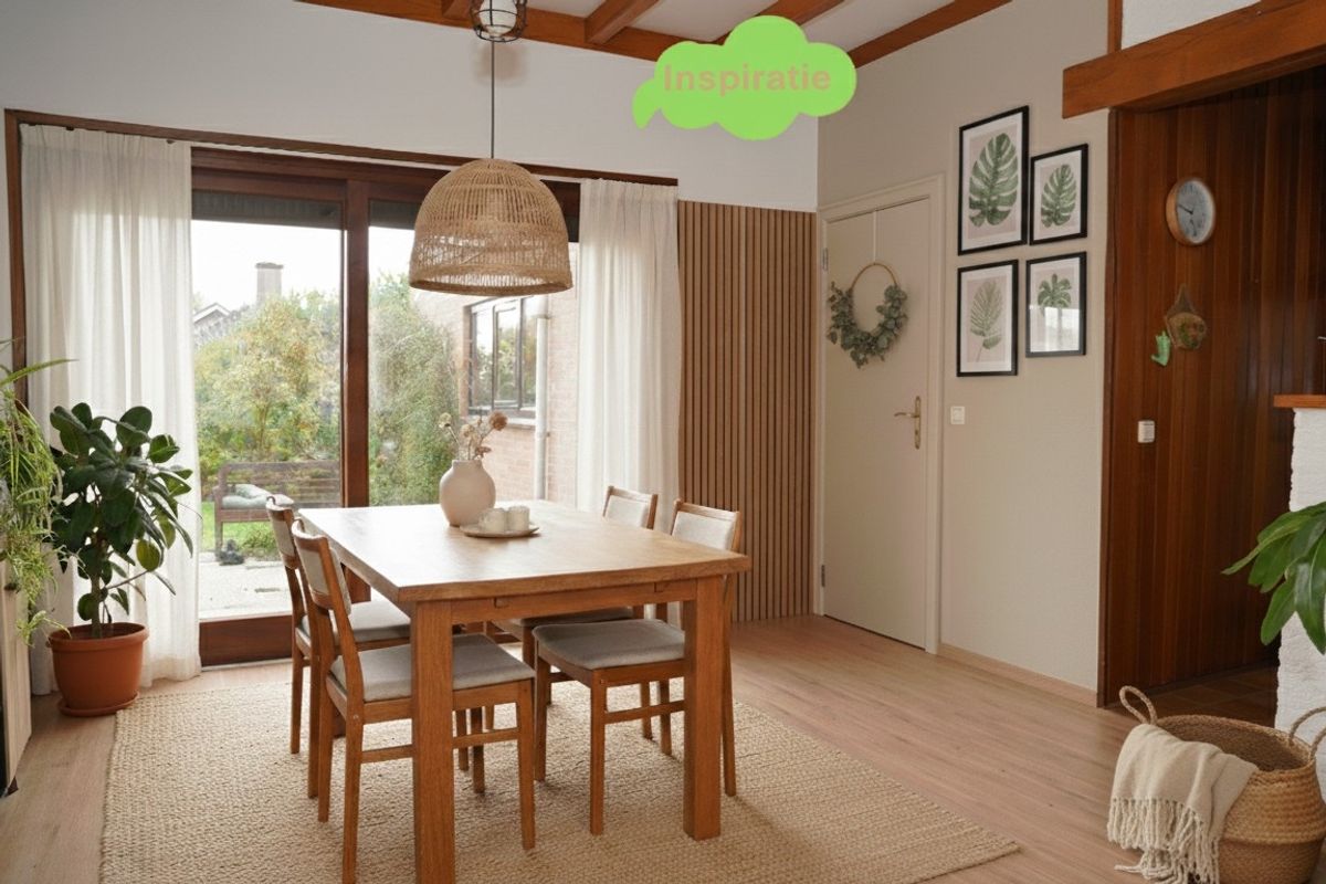 Aan de achterzijde is er voldoende plek voor een ruime eethoek met zicht op de tuin – ideaal om met familie of vrienden te genieten van een diner of een gezellige avond.