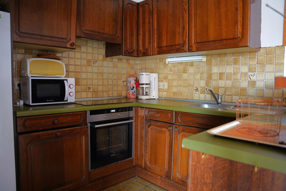 De keuken is eenvoudig van uitvoering en voorzien van een oven, kookplaat en afzuigkap – een mooie kans om hier een moderne eilandkeuken te realiseren die helemaal aansluit bij jouw woonwensen.
