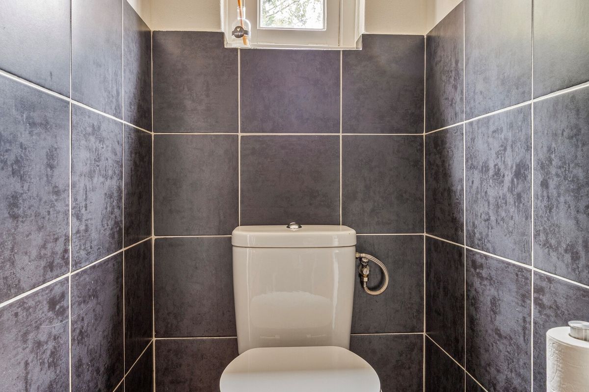 Naast de slaapkamers en badkamer bevindt zich op de eerste verdieping een apart toilet, eveneens voorzien van betegelde vloer en wanden en een plafond met stucwerk.