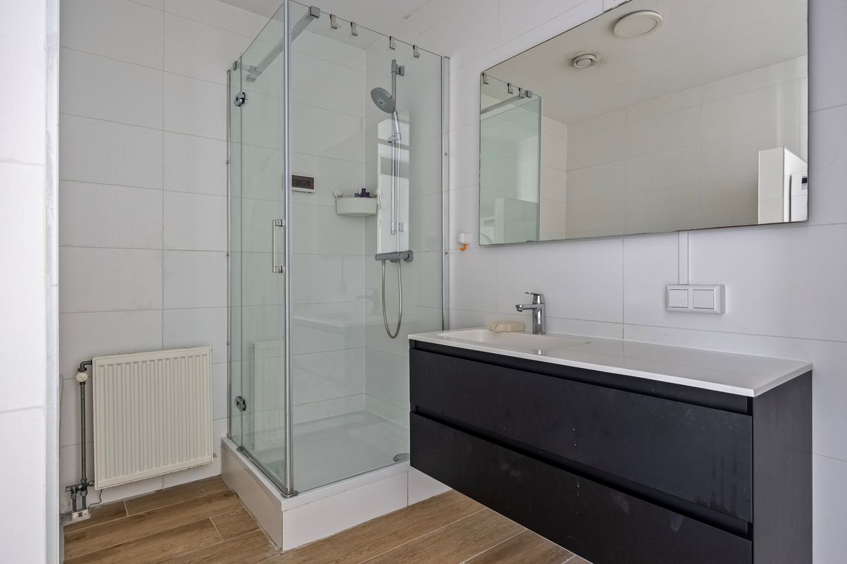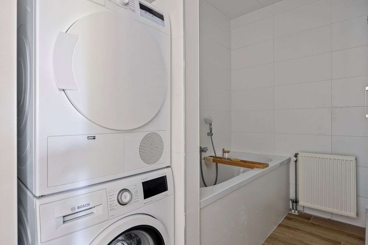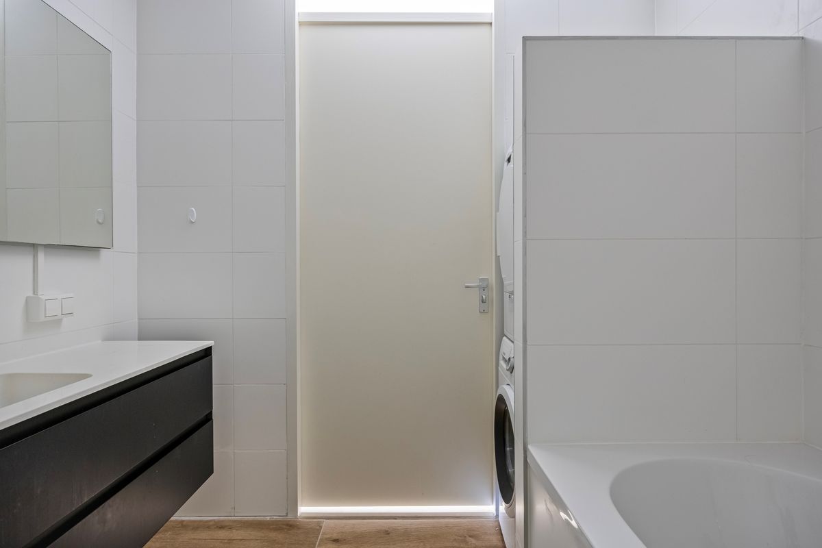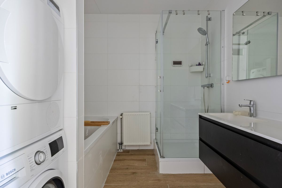De luxe badkamer is in 2019 compleet vernieuwd en met zorg afgewerkt in een moderne, lichte stijl. De ruimte is uitgerust met een comfortabele duo-ligbad met thermostaatkraan, een aparte douchecabine met thermostatische mengkraan, een wastafel met planchet, spiegel en moderne badkamermeubels. Daarnaast is er een aansluiting voor zowel wasmachine als droger aanwezig. Mechanische ventilatie zorgt voor een prettig binnenklimaat.