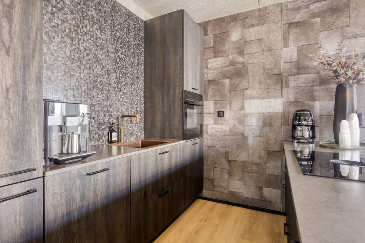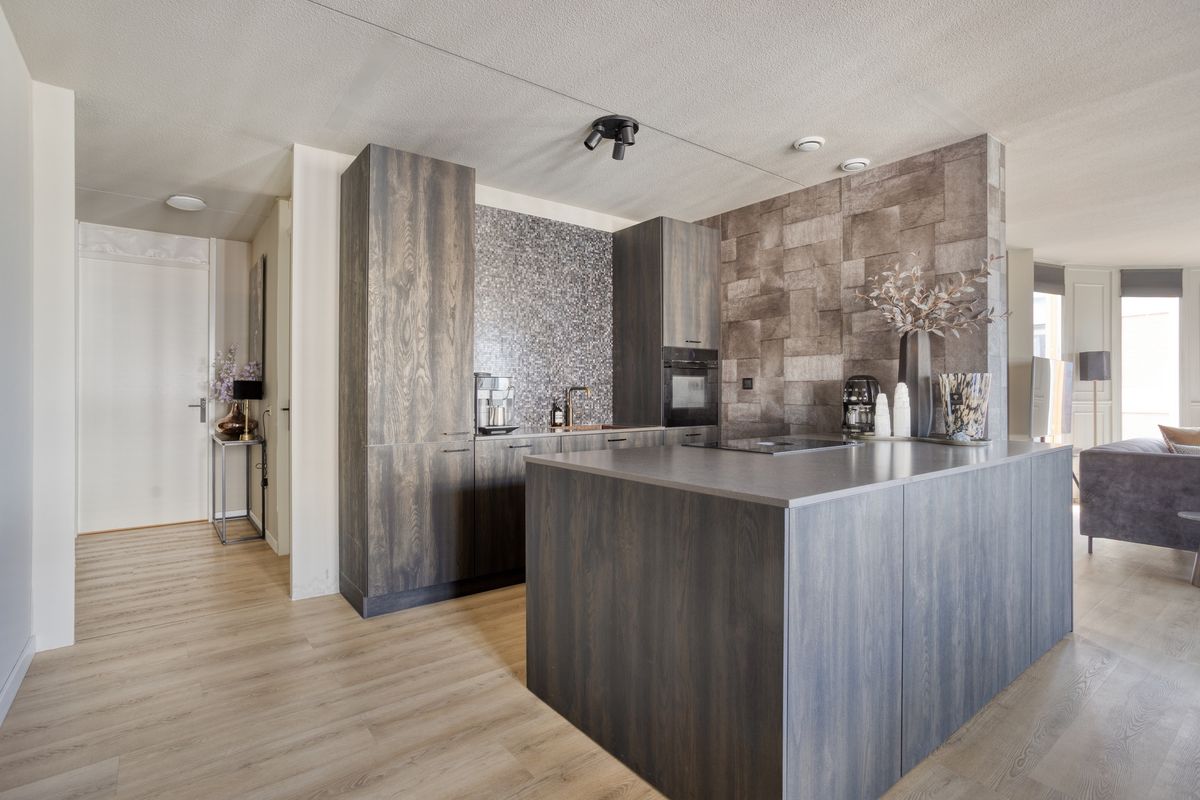 Een royale leefkeuken sluit naadloos aan op de woonkamer en biedt volop ruimte voor kookliefhebbers. Het riante kookeiland met inductiekookplaat, afzuiging, vaatwasmachine en opbergruimte is het centrale element. Daarnaast is er een praktische wandopstelling met spoelbak, oven, koelkast en extra kasten. Hier is eveneens genoeg plek voor een ruime eettafel, waardoor u uitgebreid kunt tafelen met familie en vrienden.