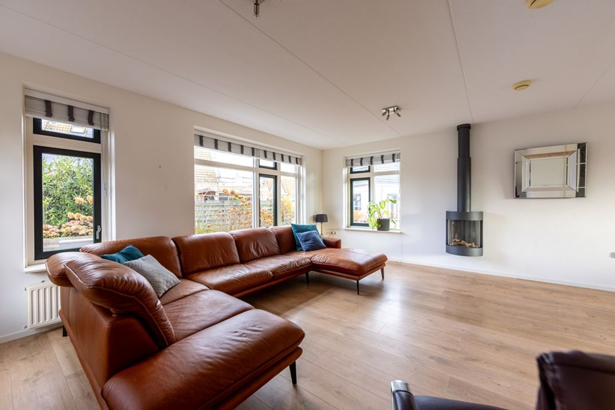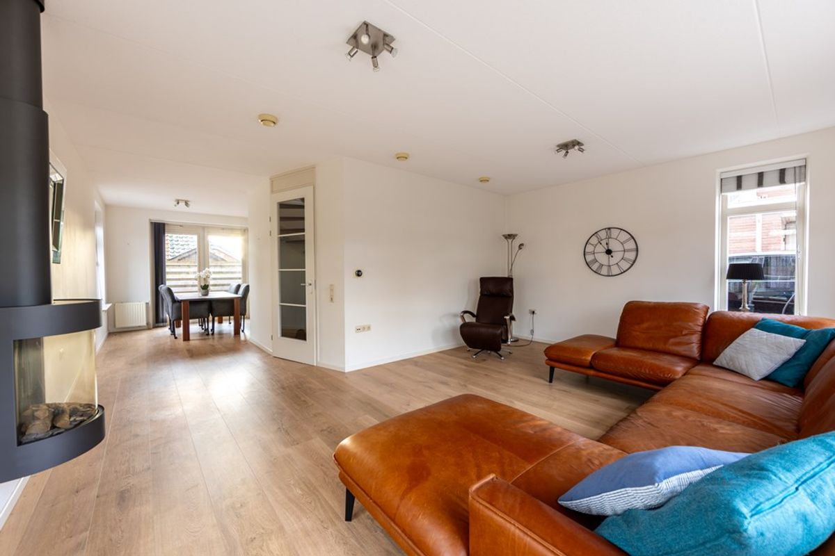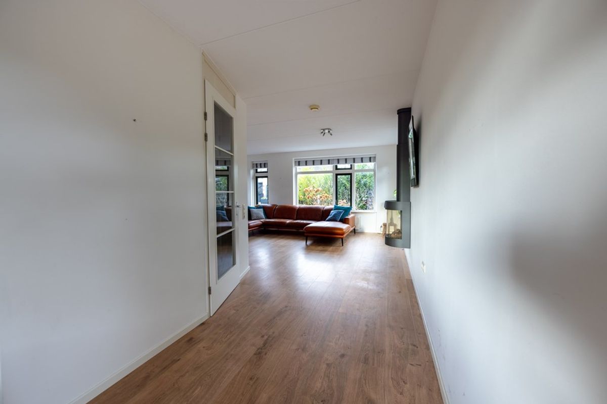 Via de hal, met toilet, kom je in de lichte L-vormige woonkamer. De moderne halfopen keuken is voorzien van diverse inbouwapparatuur. Vanuit de keuken is er een doorloop naar de bijkeuken en de aangebouwde stenen garage. Deze is geïsoleerd, verwarmd en er is een wasbak.