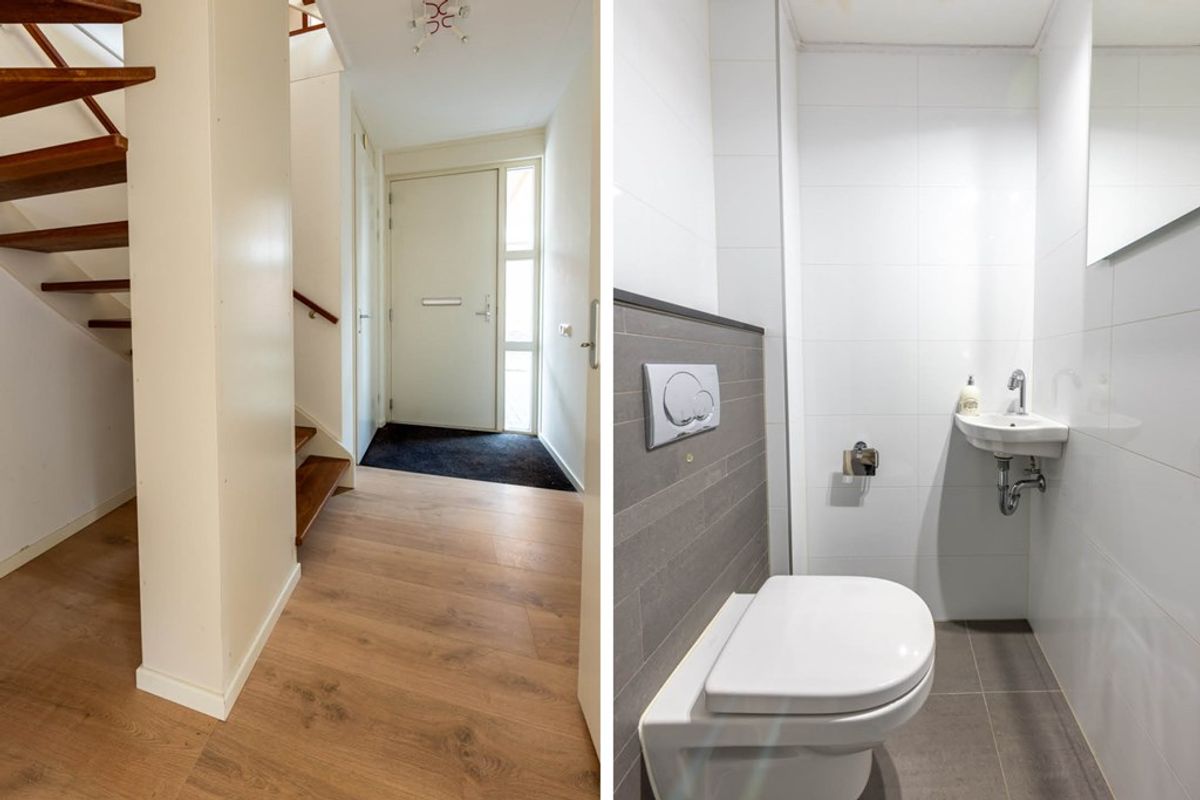 Via de 10 meter lange oprit naar de garage waar je twee auto’s kwijt kunt kom je bij de entree van de woning. Dankzij de statige en rechte bouw is er binnen verrassend veel ruimte.