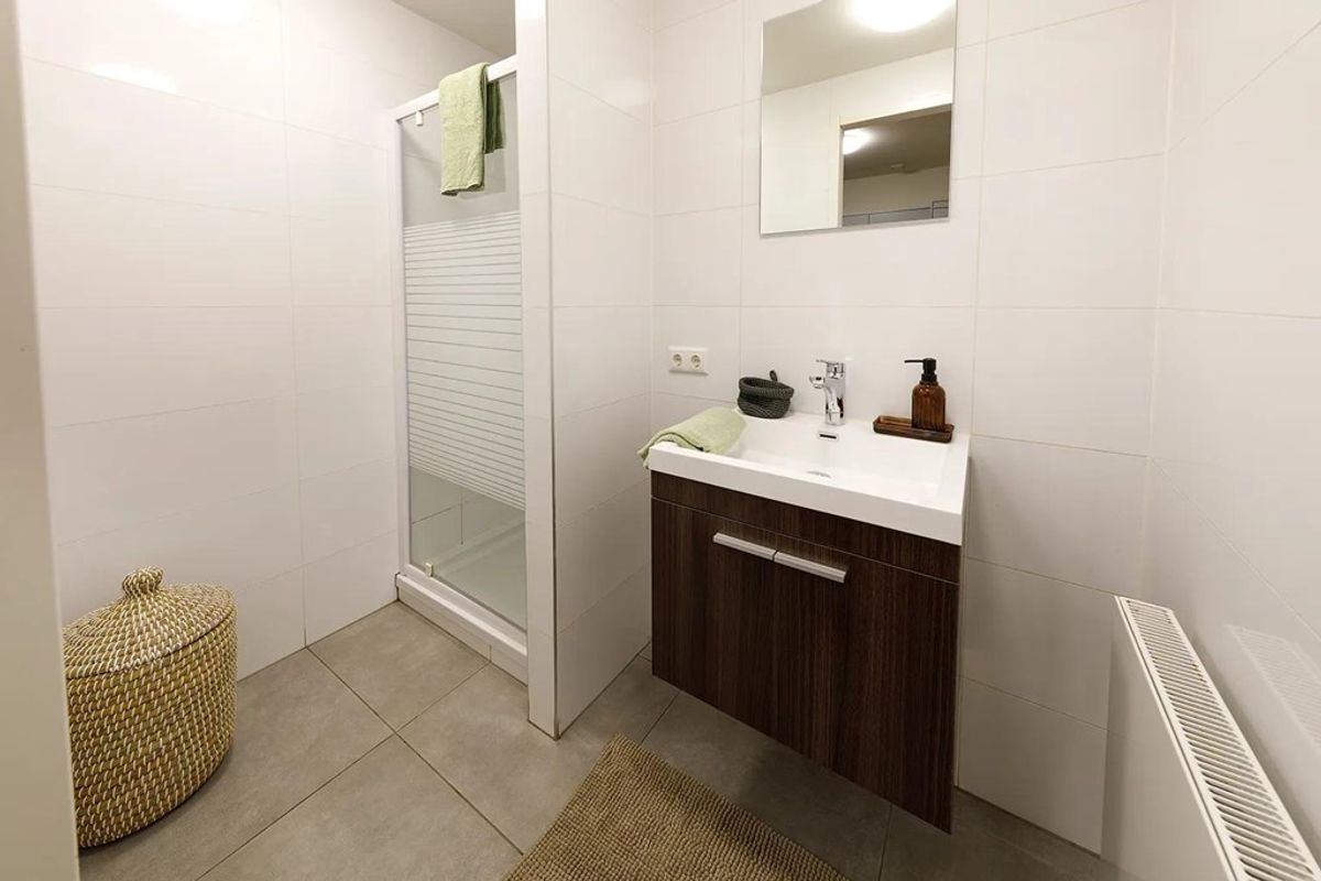 Entree, ruime woonkamer (ca. 28 m2) met open keuken voorzien van inductieplaat, afzuigkap, koelkasten met vriesvak. Het appartement heeft 2 slaapkamers van beiden ca. 10 m2; een werkkamer (9m2) en een berging (2 m2). De badkamer is voorzien van een 2 vaste wastafels en een douche. Er is een afzonderlijk toilet.