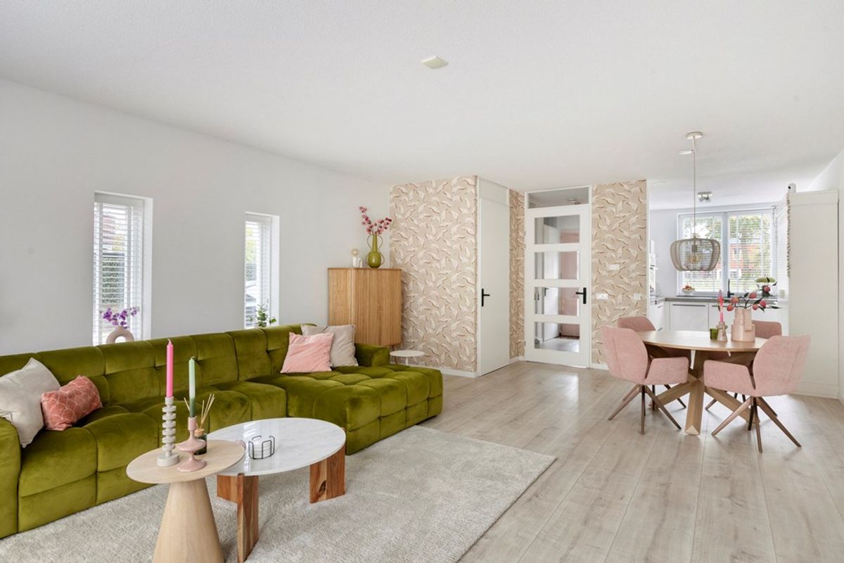 In de woonkamer geniet u van een lichte en open indeling, waarbij de ramen rondom voor een prachtige lichtinval zorgen. De ruimte biedt volop mogelijkheden om een comfortabele zithoek en een royale eethoek te creëren. Dankzij de moderne afwerking sluit de woonkamer naadloos aan bij de eigentijdse woonwensen. De openslaande deuren naar de tuin maken dit tot een ideale plek om binnen en buiten met elkaar te verbinden.