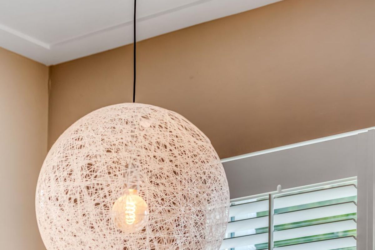 Op de eerste verdieping vind je een royale living met kasteelhouten vloer en veel grote ramen. Via de op maat gemaakte kamer-en-suite kast met glas-in-lood schuifdeuren kom je in de sfeervolle werkruimte of speelkamer. Hier is ruimte voor rust en inspiratie. Op deze verdieping zijn trouwens ook aansluitingen voor een pantry/keuken aanwezig.