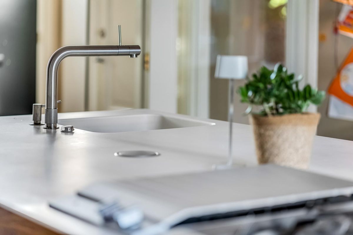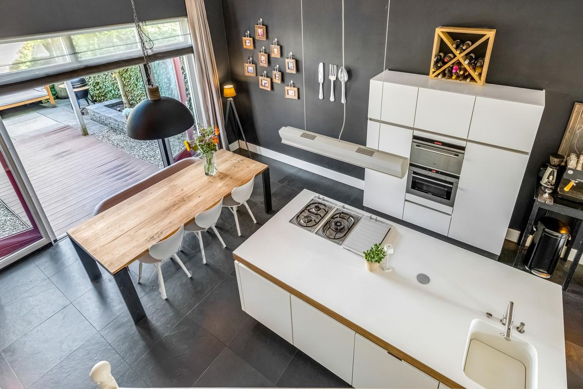 Zodra je de woning binnenstapt, valt meteen de hoogte op. De plafonds in de hal en leefkeuken reiken tot wel 3,22 meter, wat een gevoel van luxe en luchtigheid geeft. De strakke witte Siematic keuken met centraal kookeiland is een echte blikvanger. Hier is werkelijk aan alles gedacht met o.a. een gaskookplaat van Gaggenau met grillplaat en wokbrander, een Bulthaup-afzuigsysteem, combi-oven, stoomoven, koelkast én vriezer, vaatwasser en Quooker inclusief Cube. Denk aan lange diners, gezellige ontbijtjes en inspirerende gesprekken terwijl je kookt. Grote openslaande tuindeuren verbinden de zonnige en gezellig aangelegde tuin met de woonkeuken.