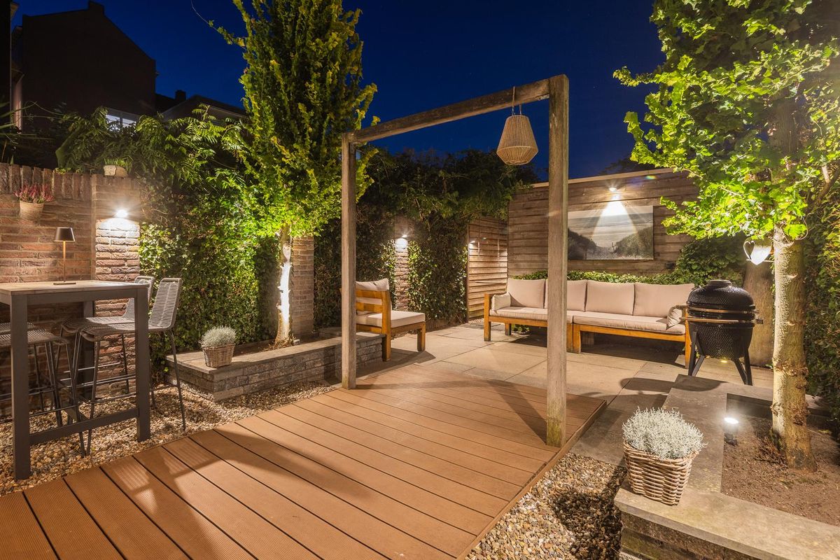 De zonnige achtertuin ligt op het oosten en is sfeervol en gezellig aangelegd. De perfecte plek voor lange zomeravonden of ontspannen momenten met familie en vrienden. Hier is ook een eigen berging. Via de tuin kom je bij een gezamenlijk binnenterrein dat alleen voor bewoners toegankelijk is. Je auto parkeer je op een eigen parkeerplaats bereikbaar via de afgesloten poort.