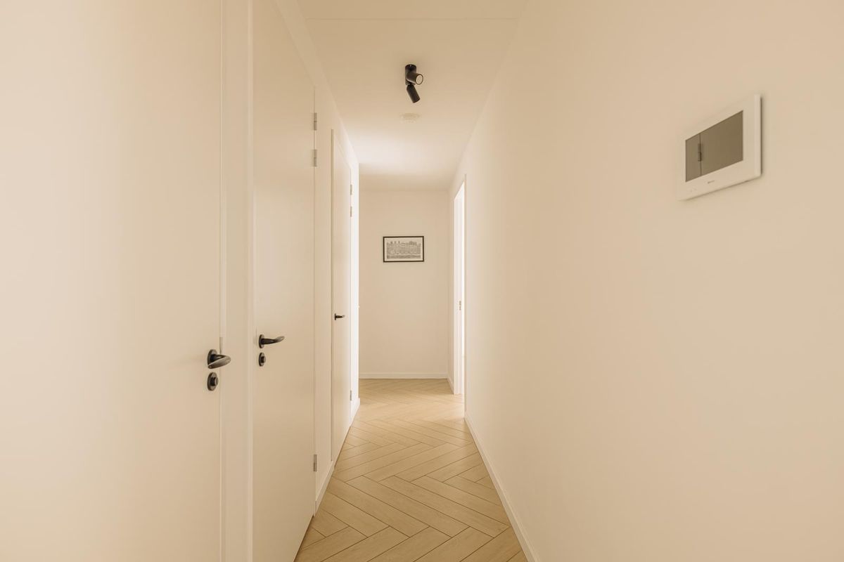 Via de chique entree van de het complex, bereik je via lift of trap de tweede verdieping. Bij binnenkomst via de hal springt de verzorgde afwerking meteen in het oog. Via de gang kom je in het hart van het huis: een royale leefruimte waarin keuken, eetkamer en woonkamer op natuurlijke wijze met elkaar verbonden zijn. De open keuken van Siematic is strak en modern, met kookeiland. De grote raampartijen met stijlvolle kozijnen zorgen voor veel natuurlijk lichtinval in zowel het eet- als woongedeelte. Het royale balkon op het oosten is middels schuifpui te bereiken en is in de zomer een verlengstuk van de woonkamer. Die riante slaapkamer biedt meer dan genoeg ruimte voor een kingsize bed, een grote kledingkast en een thuiswerk bureau. Vanuit de hal heb je tevens nog toegang tot een ruim berghok voor o.a. wasmachine en droger, een separaat toilet en de chique badkamer. In de badkamer tref je stijlvol tegelwerk, een inloop regendouche en een strak badkamermeubel met veel opbergruimte.