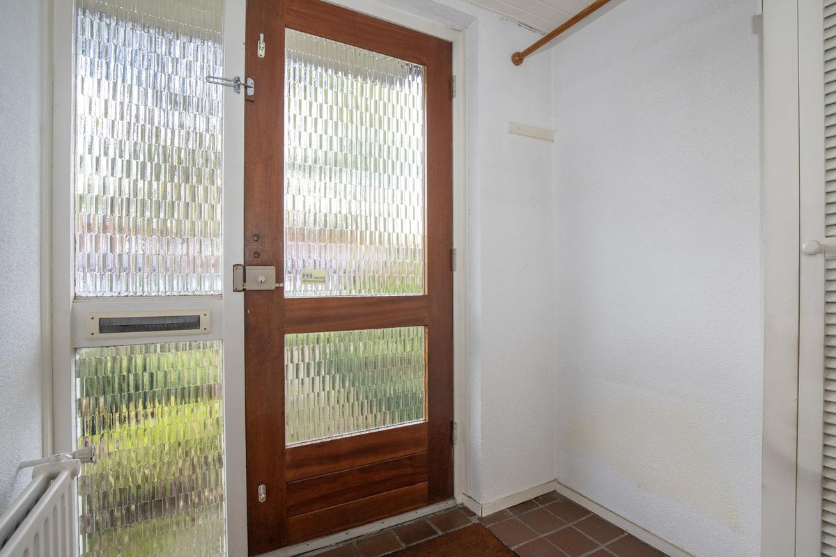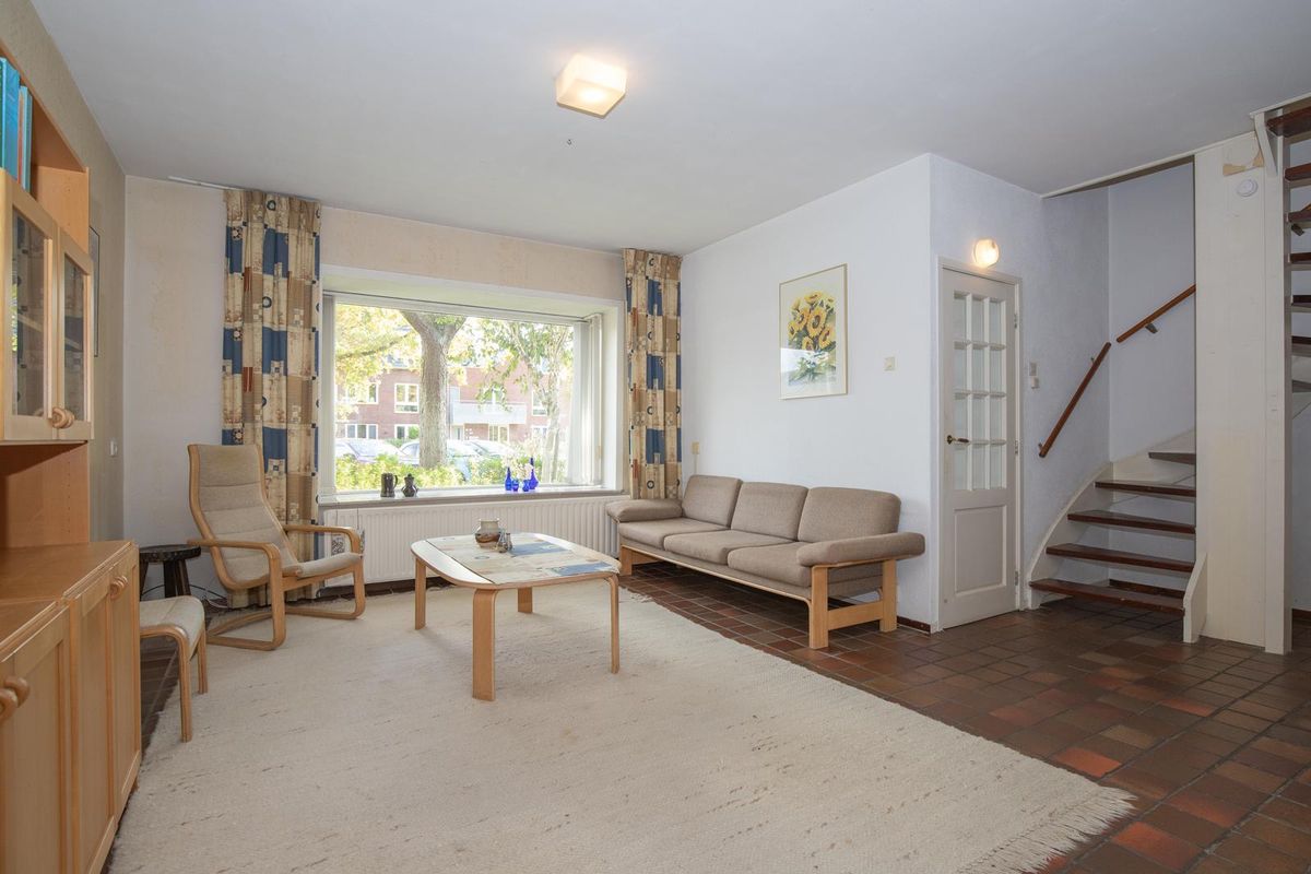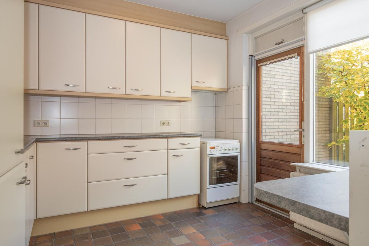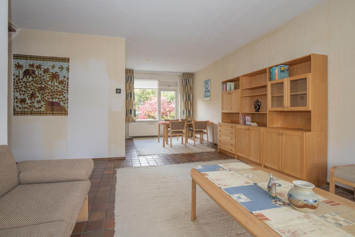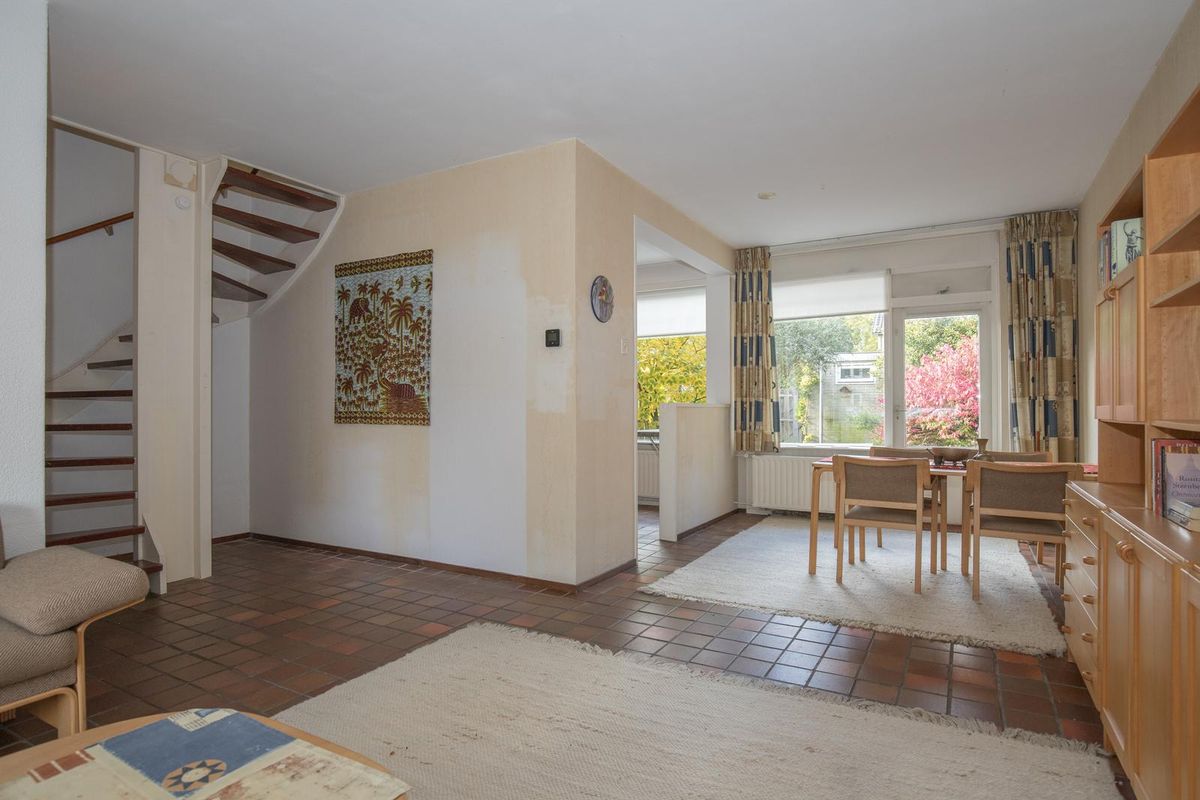 Entree met meterkast en toilet. De royale, lichte woonkamer met plavuizenvloer biedt een fijn zitgedeelte en plek voor de eethoek. Grote ramen aan zowel de voor- als achterzijde zorgen voor veel daglicht en een mooi contact met de tuin. De open keuken sluit hier prettig op aan.