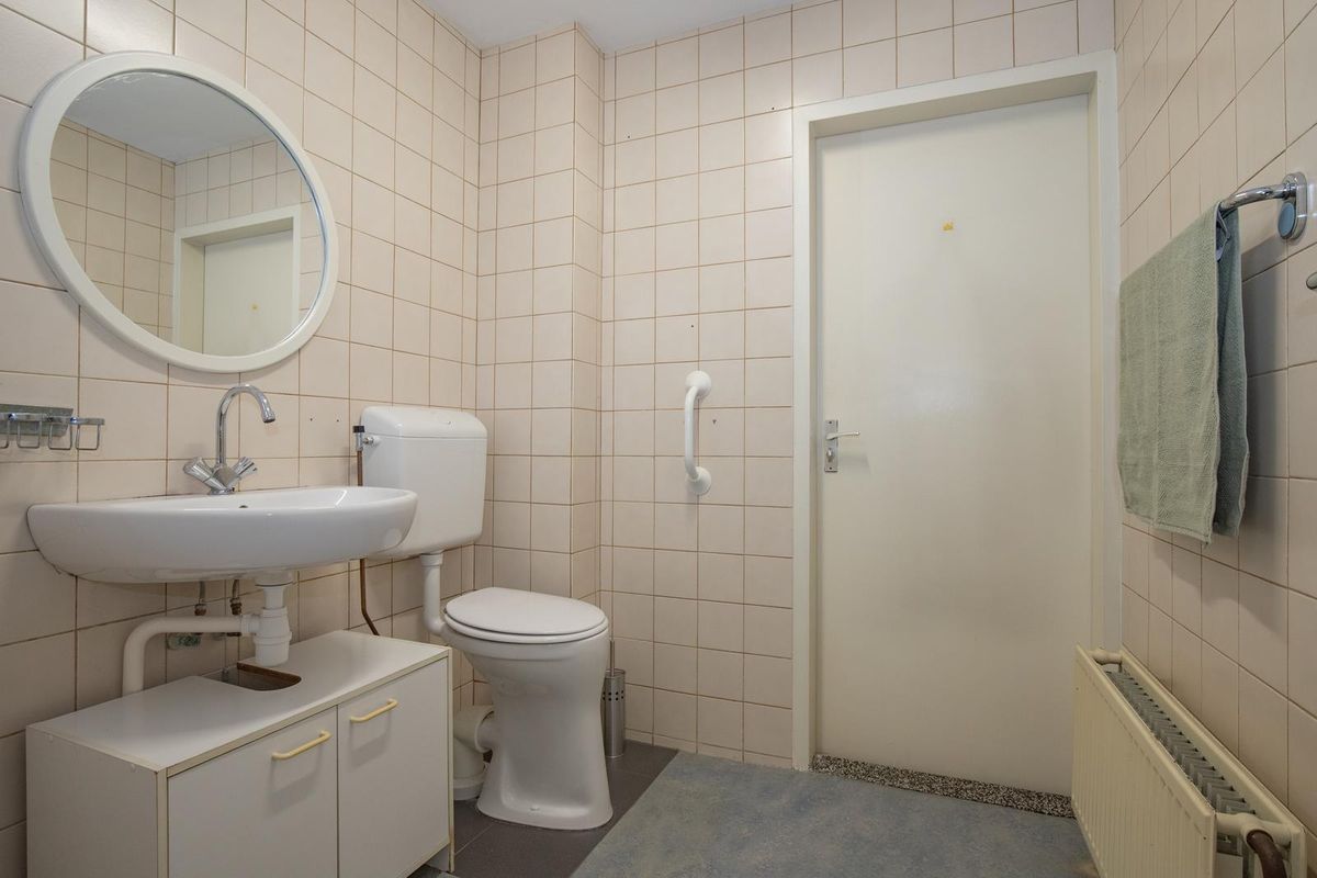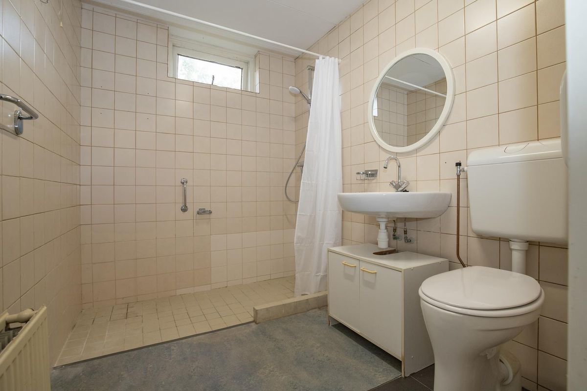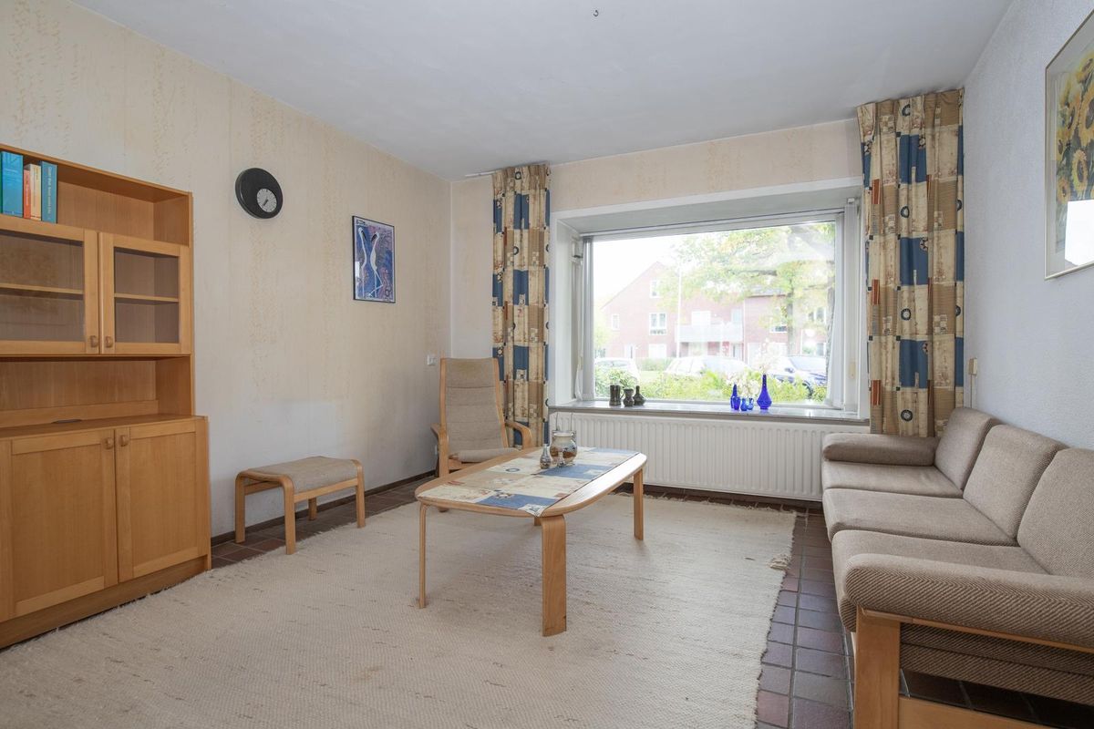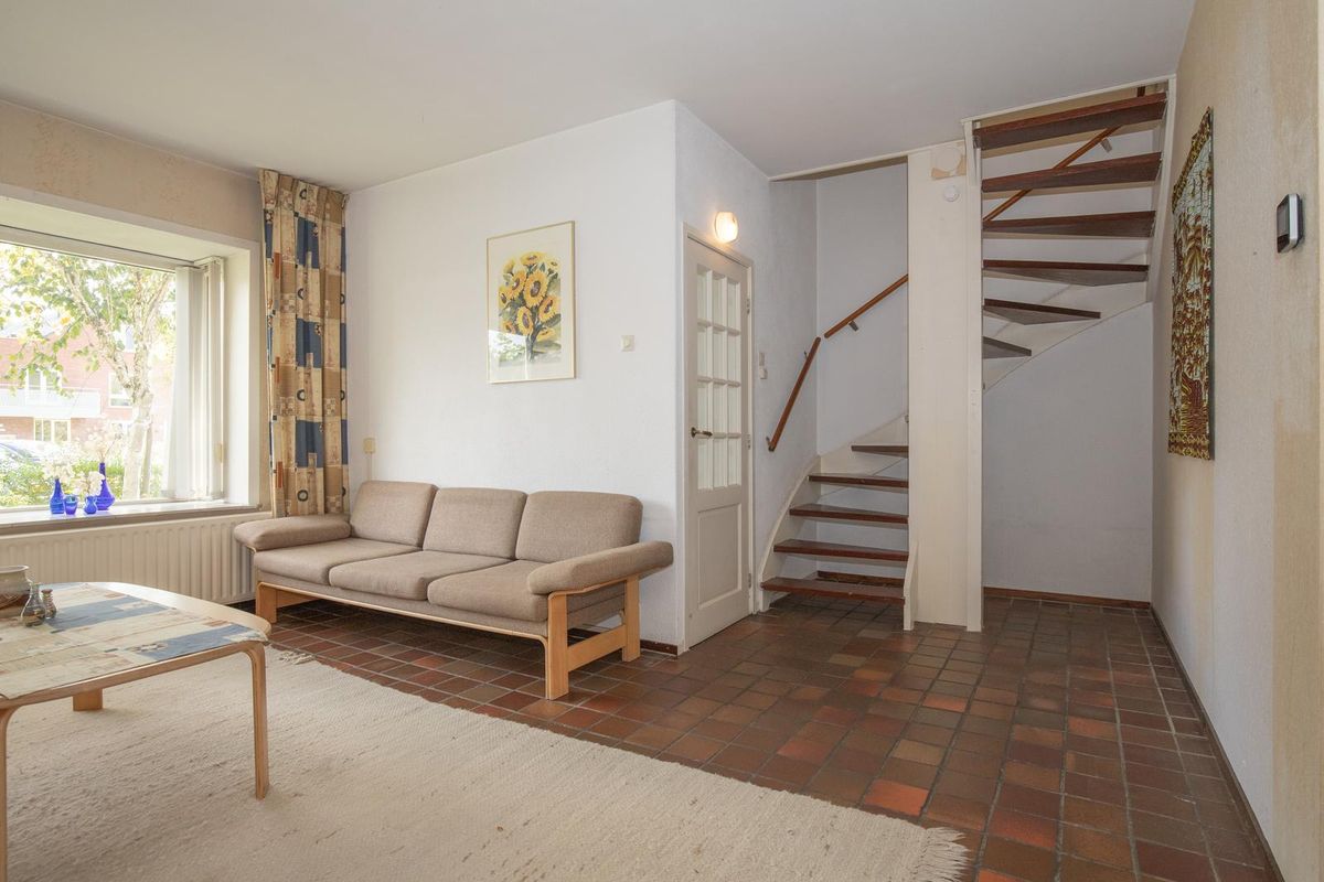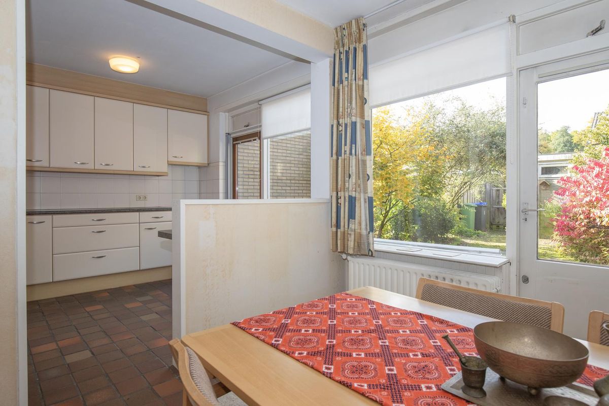 Entree met meterkast en toilet. De royale, lichte woonkamer met plavuizenvloer biedt een fijn zitgedeelte en plek voor de eethoek. Grote ramen aan zowel de voor- als achterzijde zorgen voor veel daglicht en een mooi contact met de tuin. De open keuken sluit hier prettig op aan.