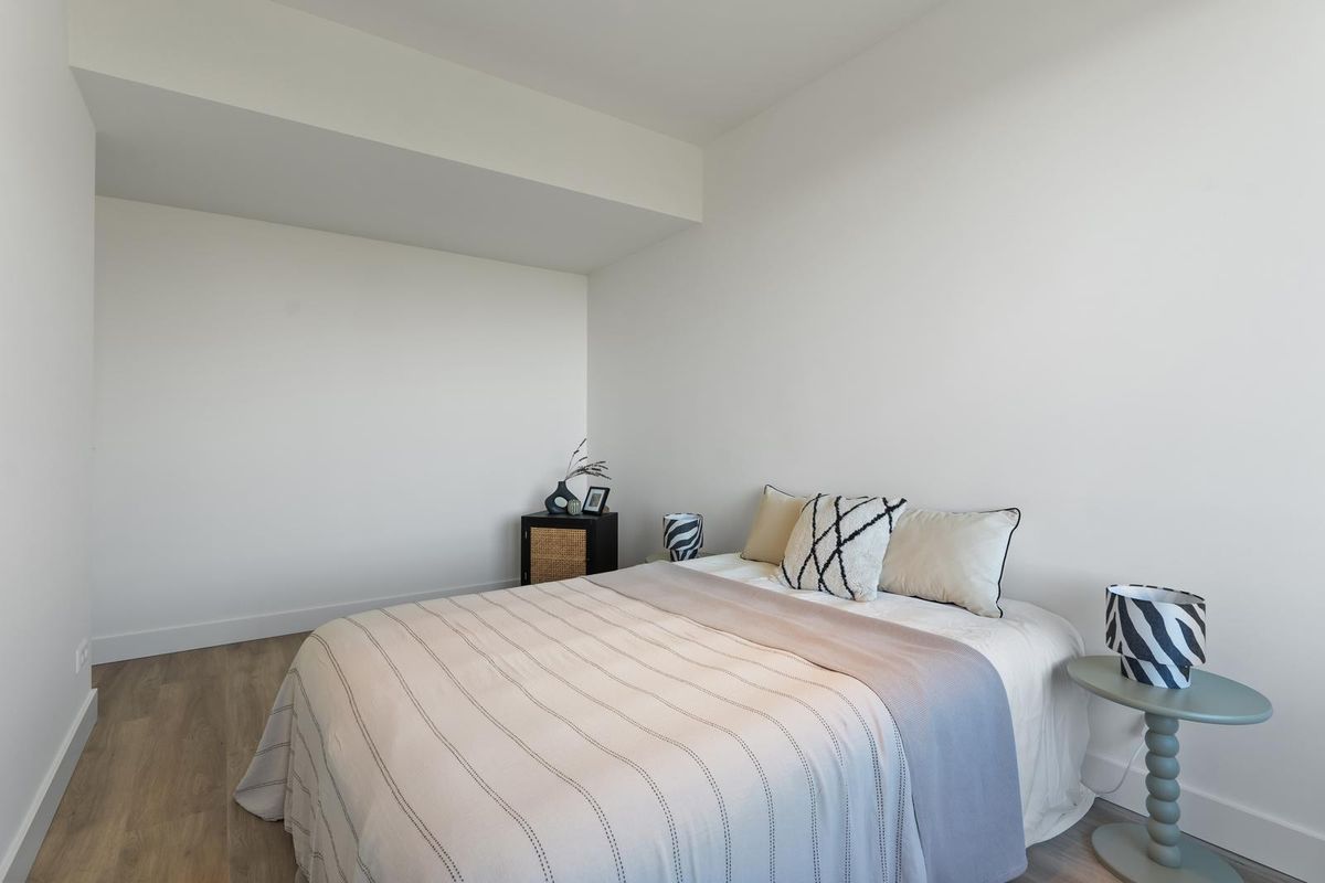 De moderne badkamer is uitgerust met een inloopdouche, wastafelmeubel en hangend toilet. Aan de achterzijde vind je de ruime woonkamer en nog twee slaapkamers (ca. 9 m² en 11 m²). Vanuit de woonkamer en één van de slaapkamers stap je zo het eerste balkon op; het tweede balkon grenst aan de derde slaapkamer. Beide balkons liggen op het westen en bieden heerlijke avondzon.