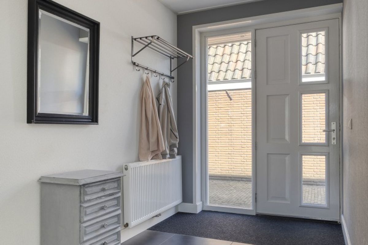 Binnenkomend stap je de entree in met toilet en toegang tot zowel de keuken als de woonkamer.