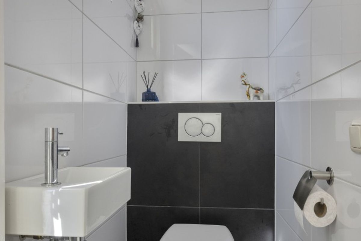 Op de overloop is een tweede, separaat toilet aanwezig en een handige berging met aansluitingen voor wasmachine en droger.