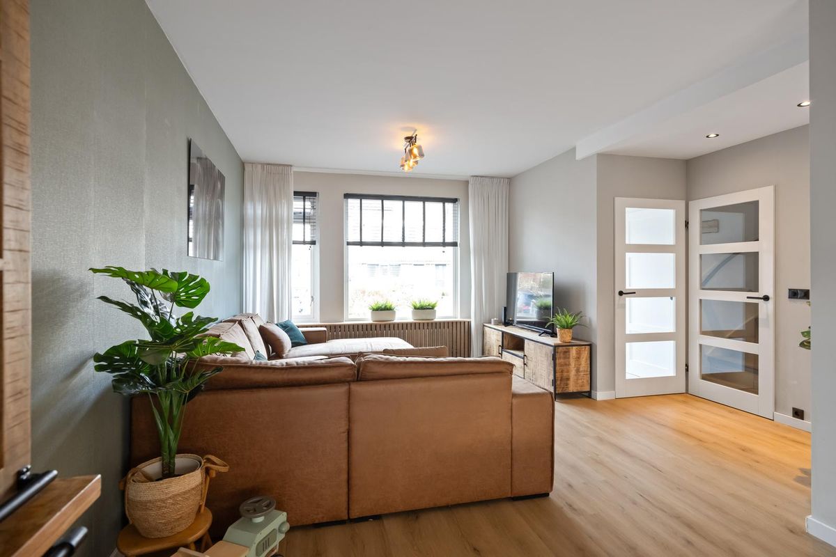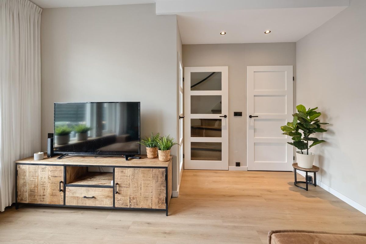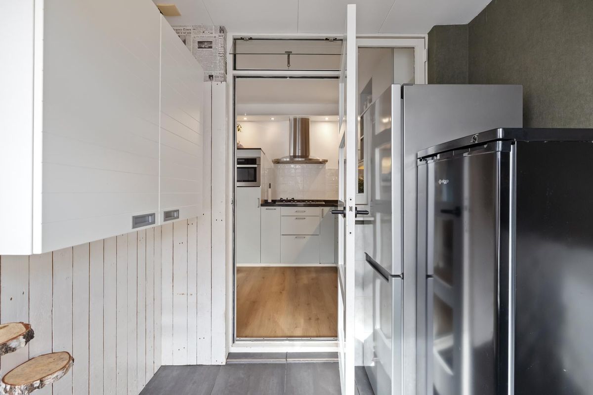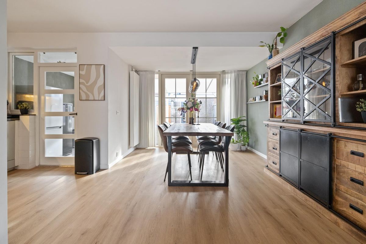 De woonkamer is licht en sfeervol en afgewerkt met een strakke PVC vloer die zorgt voor een rustige en eigentijdse uitstraling. De keuken in hoekopstelling vormt het hart van de woning en is uitgerust met inbouwapparatuur zoals een gaskookplaat, combi oven, vaatwasser, koelkast en afzuigkap. Aangrenzend bevindt zich een praktische bijkeuken met extra kastruimte, ideaal voor dagelijks gebruik.