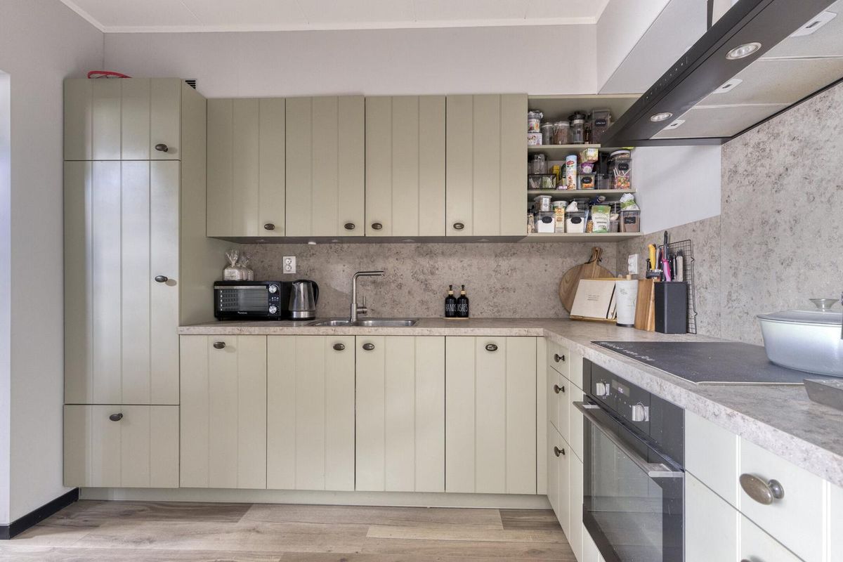 Vanuit de woonkamer loopt u direct door naar de keuken, die in 2020 volledig vernieuwd is en voorzien van alle gemakken. Aansluitend bevindt zich de praktische bijkeuken met was- en drogeraansluiting.