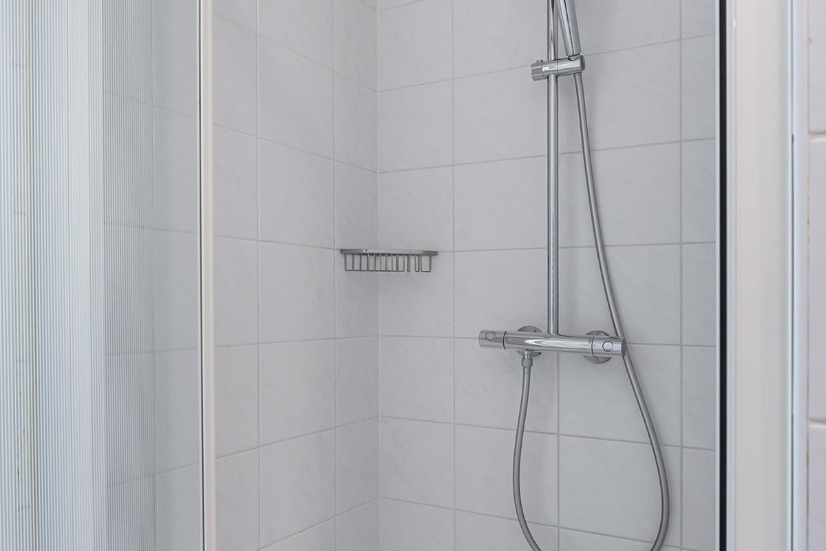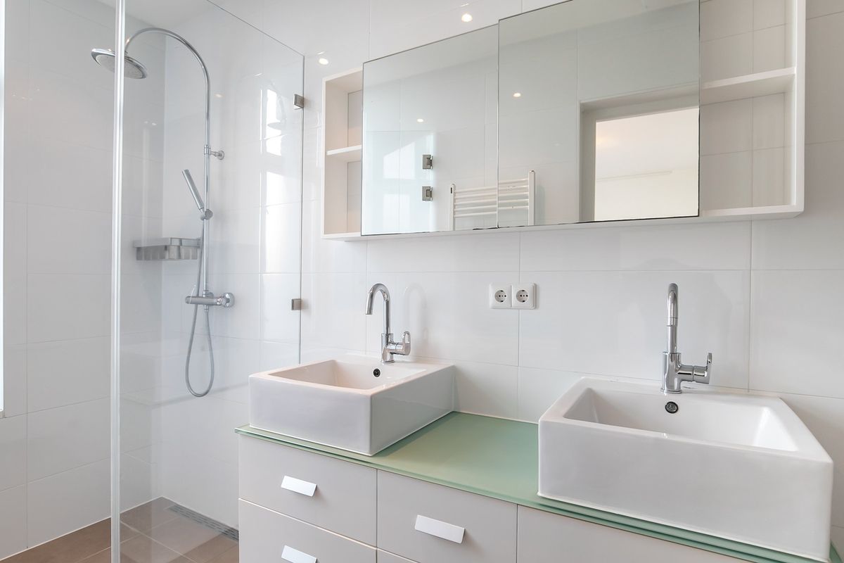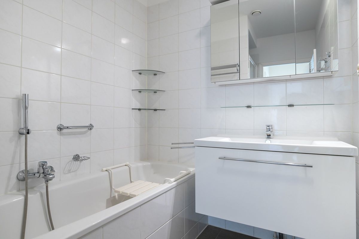 Stairs to the upper floor where all bedrooms are situated, two can be found at the front side of the property the third bedroom at the rear. From the master bedroom, you can access the sunny terrace providing a view towards the skyline of The Hague. One bathroom is fitted with a shower and washbasin with mirror, the second bathroom has a bathtub, separate shower and washbasin. Utility cupboard with washing machine and dryer.