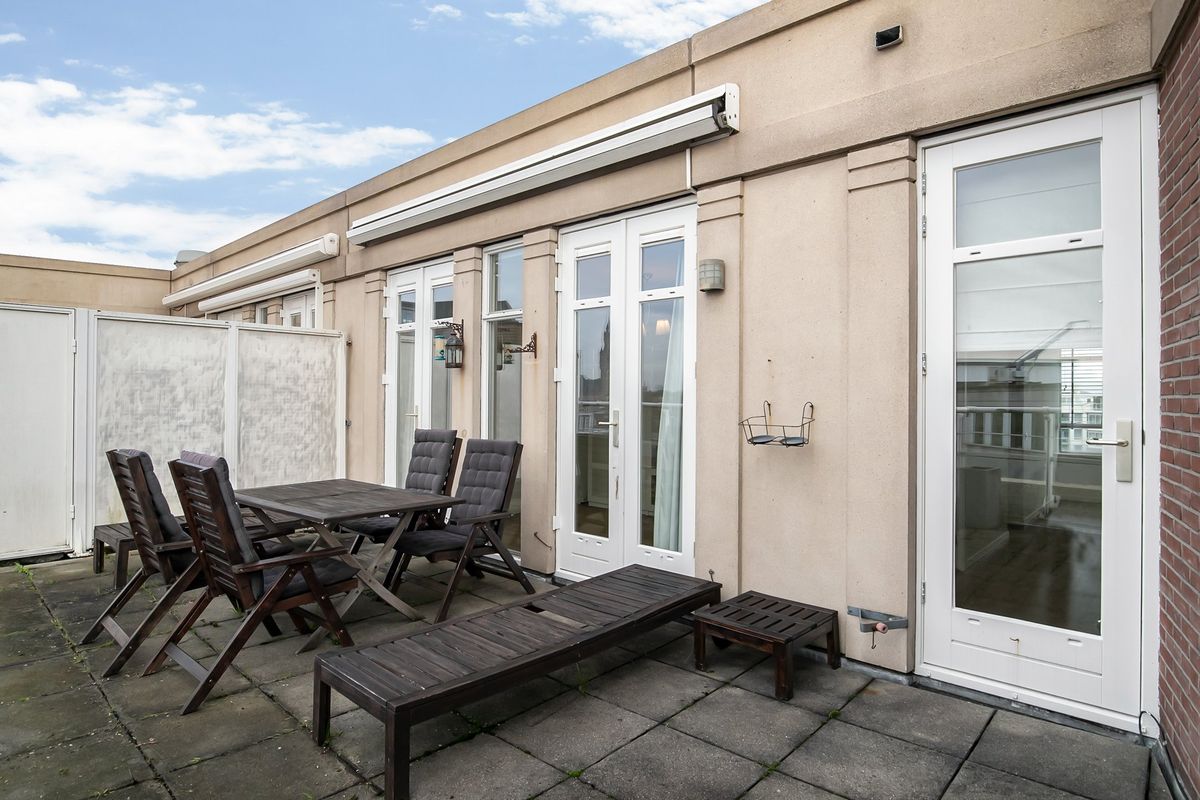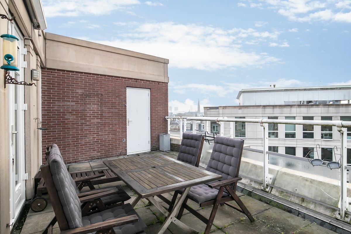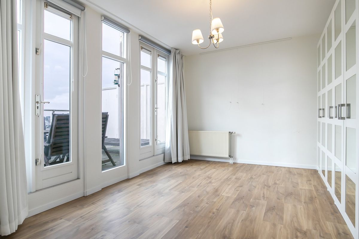 Spacious penthouse apartment divided over two floors situated at the beautiful Archipel area. The apartment is situated in the Crescent building, developed by the Spanish architect Bofill. From the living area, you have a beautiful view over the greenery and pond that is situated in between the buildings. This amazing property comes with three bedrooms, two bathrooms, a spacious living and dining area, a separate big and open kitchen with a kitchen island, a laundry room, and indoor balcony, a large and sunny terrace, and a secured indoor parking place under the building. Conveniently located within walking distance from the city center and close to the wide variety of shops at Bankastraat. Public transport is near and exit roads are easy to access. Several International organizations are located in the immediate area.