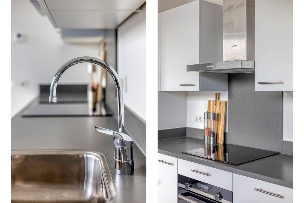 • Open keuken met hoogwaardige Siemens inbouwapparatuur (inductiekookplaat, combi-oven, koelkast, afzuigkap en vaatwasser)