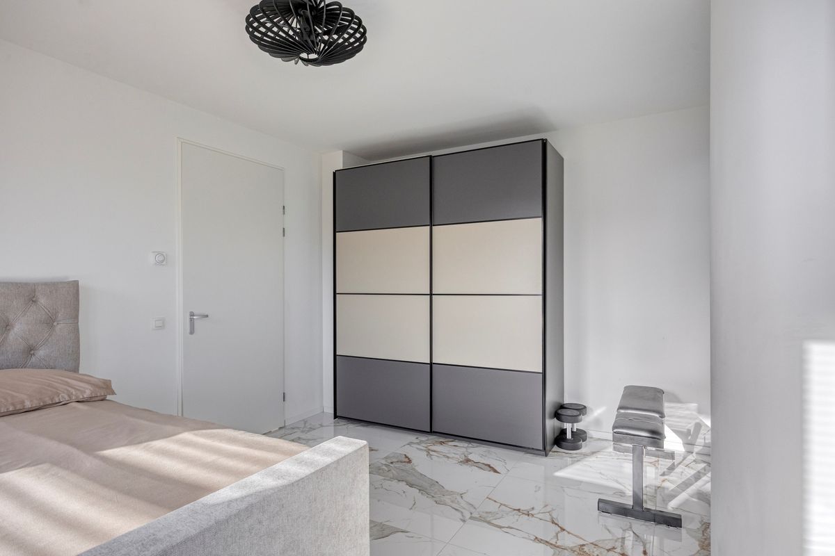 Achter de keuken ligt de badkamer met wastafel, badkamermeubel en een ruime inloopdouche. Ook is hier ruimte voor een was-/droogcombinatie. De royale, halfronde slaapkamer baadt in licht en de marmeren vloer loopt hier naadloos door. Vloerverwarming en vloerkoeling zorgen het hele jaar voor een optimaal comfort. Het appartement beschikt over energielabel A en is instapklaar. Met andere woorden je hoeft er eigenlijk alleen nog je spulletjes neer te zetten.